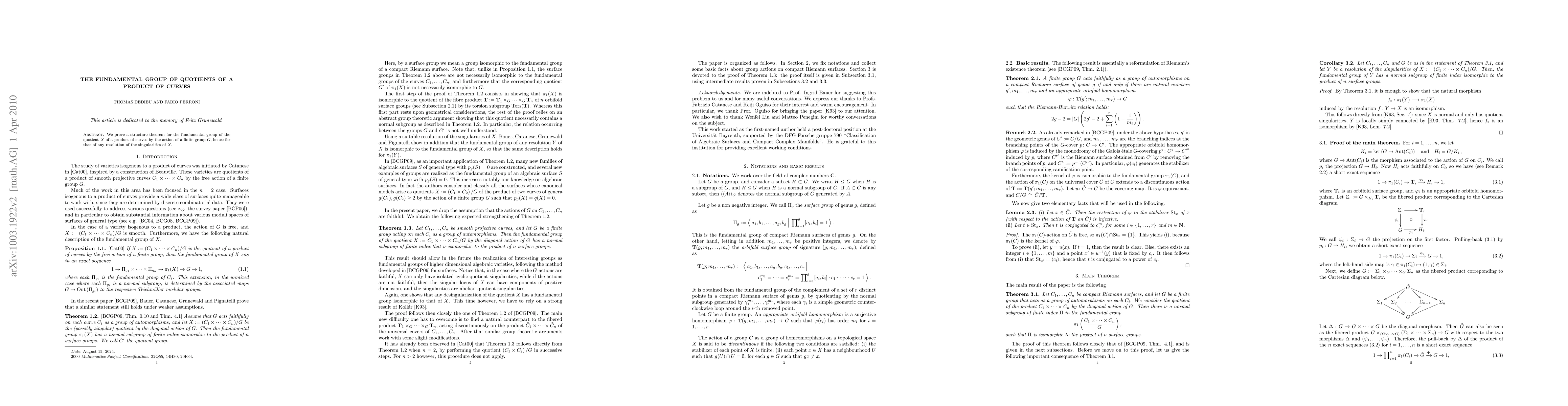We prove a structure theorem for the fundamental group of the quotient $X$ of a product of curves by the action of a finite group $G$, hence for that of any resolution of the singularities of $X$.