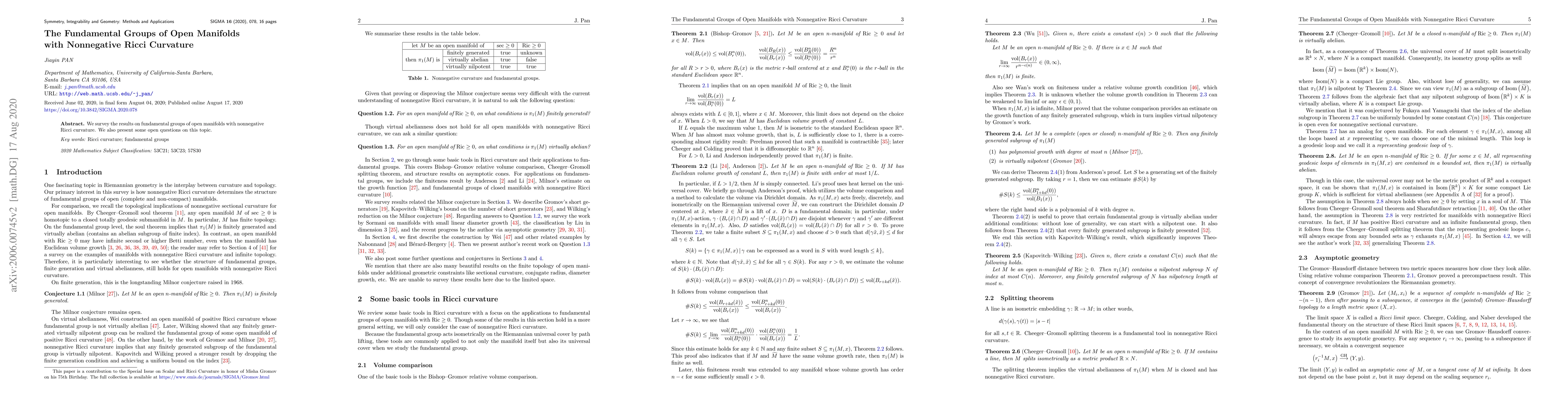 Summary: This paper reviews current findings on the fundamental groups of open manifolds with nonnegative Ricci curvature and highlights some unresolved questions in this area of geometric analysis. It aims to provide insights and stimulate further research on the subject.