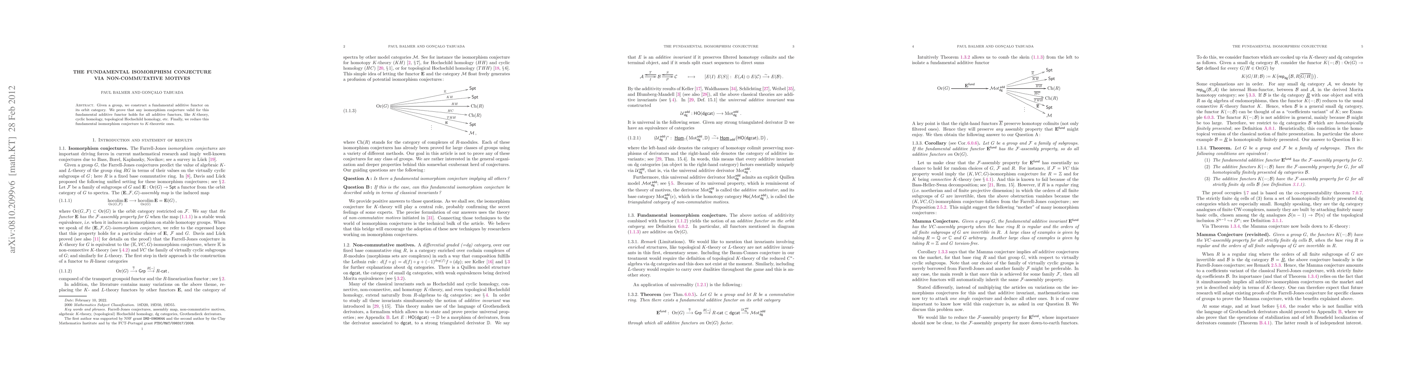 Given a group, we construct a fundamental additive functor on its orbit category. We prove that any isomorphism conjecture valid for this fundamental isomorphism functor holds for all additive functors, like K-theory, cyclic homology, topological Hochschild homology, etc. Finally, we reduce this fundamental isomorphism conjecture for K-theoretic ones.