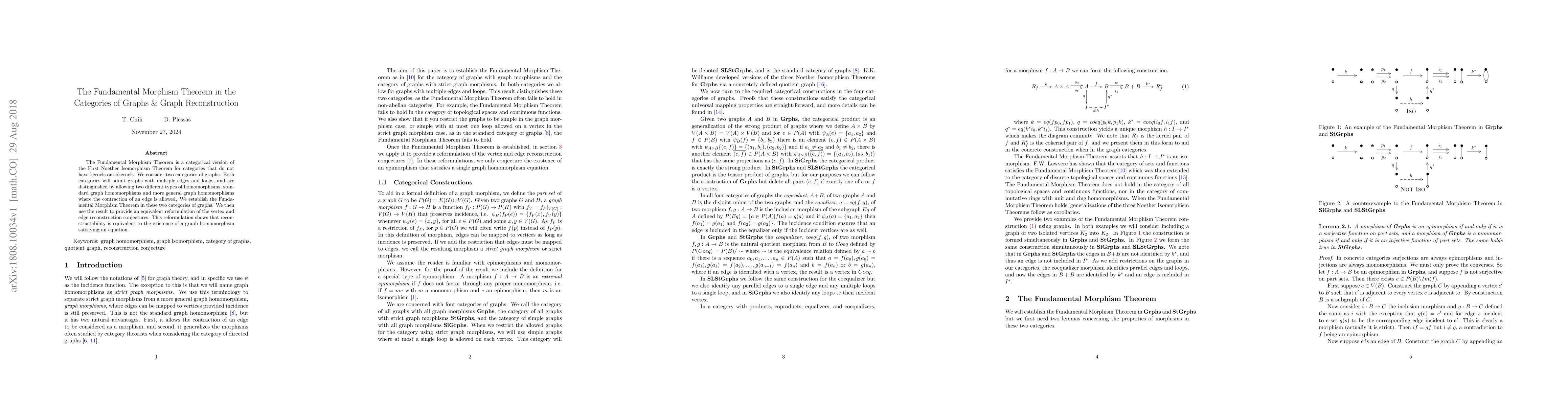 The paper establishes the Fundamental Morphism Theorem in two categories of graphs, showing that graph reconstruction is equivalent to the existence of a specific homomorphism satisfying an equation.