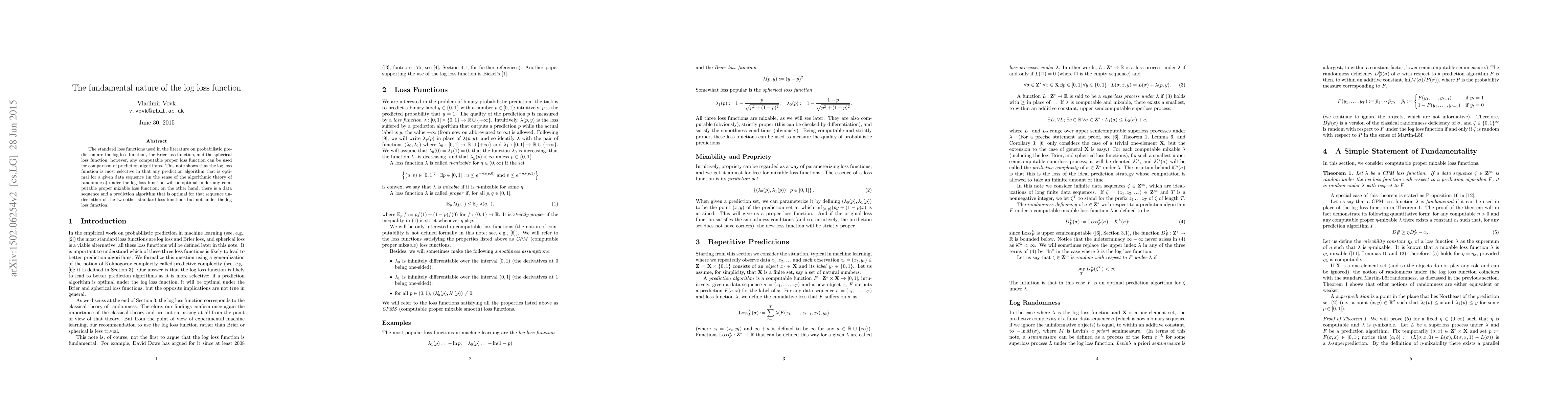 The log loss function is most selective among standard loss functions, meaning optimal algorithms under it will also be optimal under other computable proper loss functions, but not the other way around.