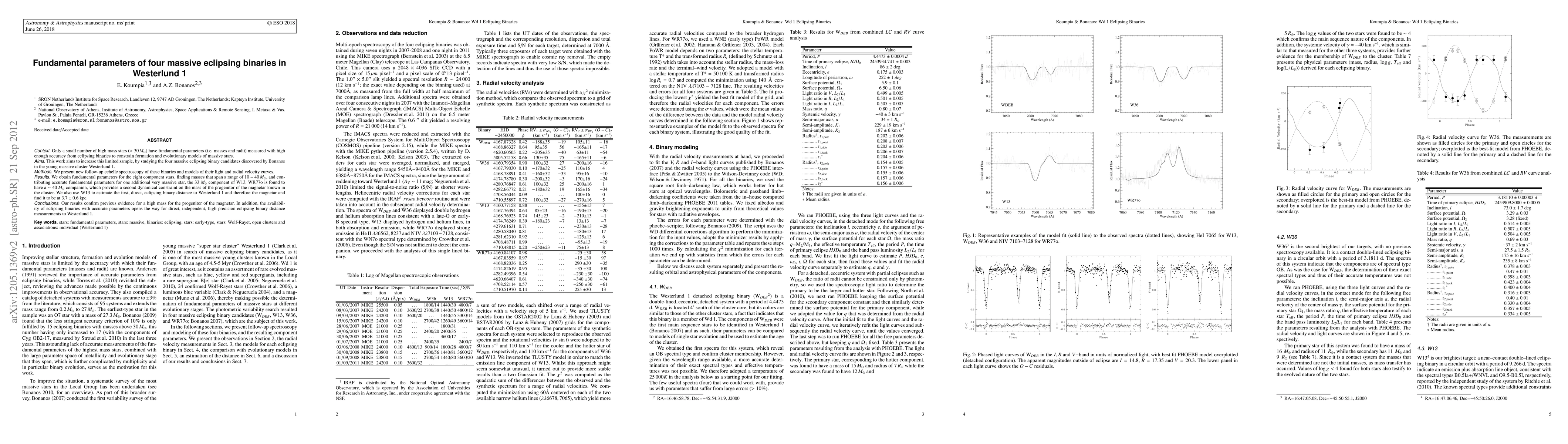 This study measures the fundamental parameters of four massive eclipsing binaries in Westerlund 1, providing accurate masses and radii for 8 stars ranging from 10 to 40 Mo. These findings confirm the high mass of the progenitor of a magnetar in the cluster and estimate the distance to Westerlund 1 at 3.7 +/- 0.6 kpc.