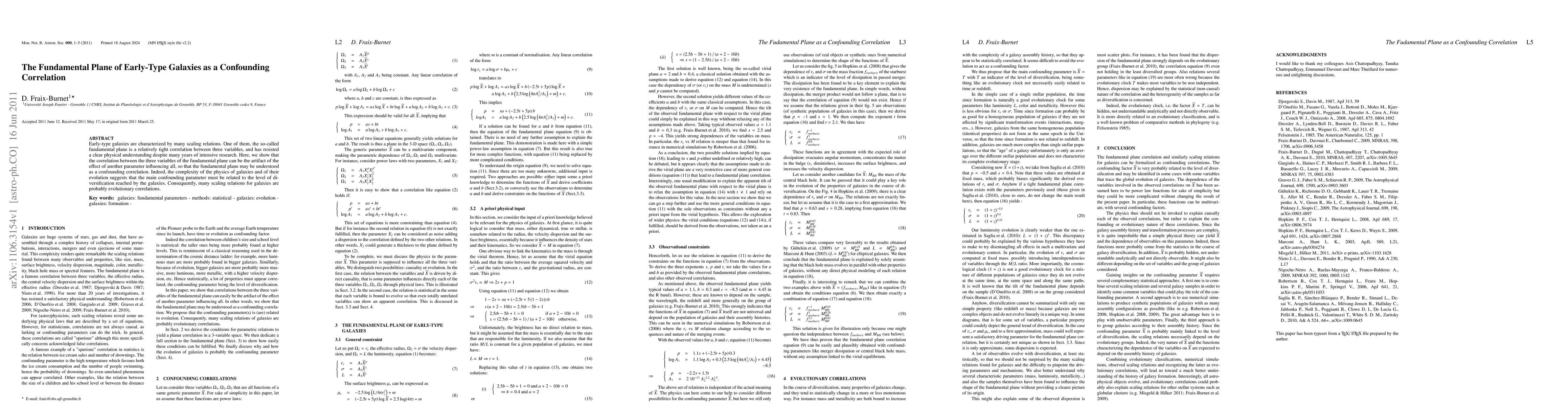 This paper argues that the fundamental plane of early-type galaxies, a tight correlation among three variables, may be an artifact rather than a true physical relationship, suggesting that it is a confounding correlation influenced by a primary confounding parameter related to the galaxies' level of diversification. Many scaling relations for galaxies are likely evolutionary correlations rather than fundamental physical laws.