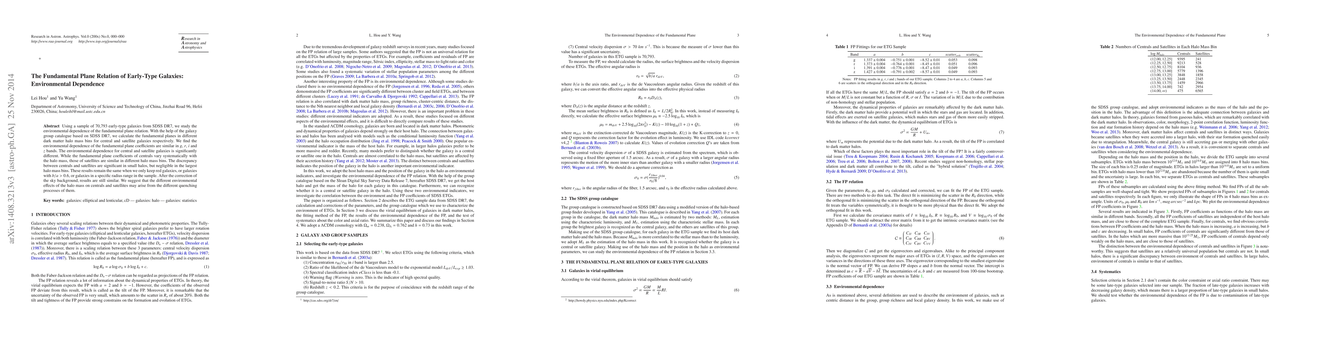 This study investigates the environmental dependence of the fundamental plane relation in early-type galaxies using a large SDSS sample. It reveals significant differences in the fundamental plane coefficients between central and satellite galaxies, with centrals showing variation with halo mass and satellites remaining consistent across different halo masses.