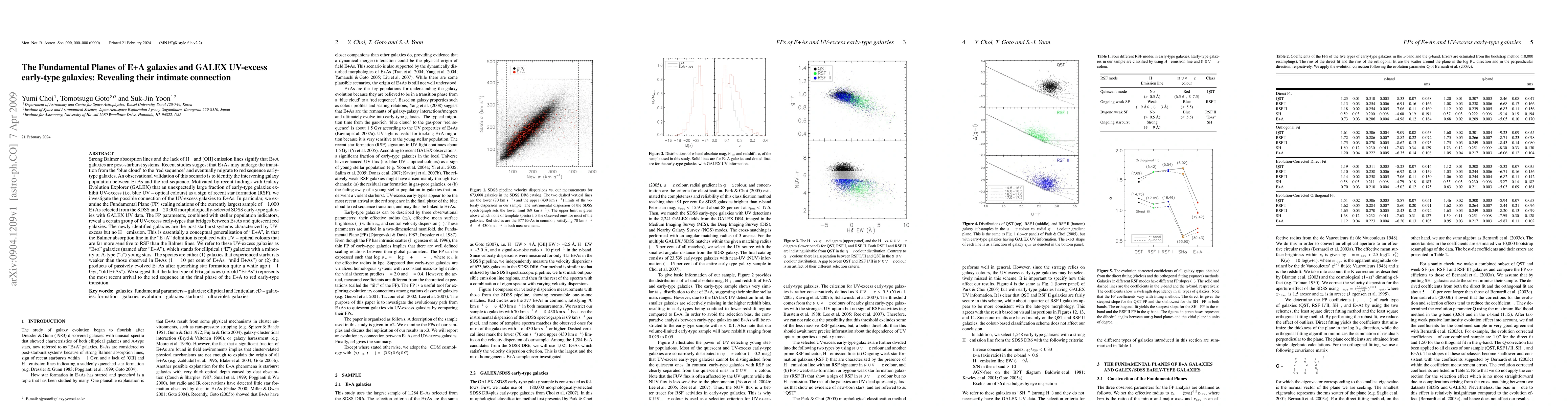 Strong Balmer absorption lines and the lack of Ha and [OII] emission lines signify that E+As are post-starburst systems. Recent studies suggest that E+As may undergo the transition from the `blue cloud' to the `red sequence' and eventually migrate to red sequence ETGs. An observational validation of this scenario is to identify the intervening galaxy population between E+As and the red-sequence. Motivated by recent findings with GALEX that a large fraction of ETGs exhibit UV-excess as a sign of RSF, we investigate the possible connection of the UV-excess galaxies to E+As. In particular, we examine the FP scaling relations of the largest sample of ~1,000 E+As selected from the SDSS and ~20,000 morphologically-selected SDSS ETGs with GALEX UV data. The FP parameters, combined with stellar population indicators, reveal a certain group of UV-excess ETGs that bridges between E+As and quiescent red galaxies. The newly identified galaxies are the post-starburst systems characterized by UV-excess but no Ha emission. This is a conceptual generalisation of "E+A", in that the Balmer absorption line in the "E+A" definition is replaced with UV-optical colours that are far more sensitive to RSF than the Balmer lines. We refer to these UV-excess galaxies as "E+a" galaxies, which stands for elliptical ("E") galaxies with a minority of A-type ("a") young stars. The species are either (1) galaxies that experienced starbursts weaker than those observed in E+As (1~10% of E+As, "mild E+As") or (2) the products of passively evolved E+As after quenching star formation quite a while ago (~1 Gyr, "old E+As"). We suggest that the latter type of E+a galaxies represents the most recent arrival to the red sequence in the final phase of the "E+A" to "red early-type" transition. (Abridged)