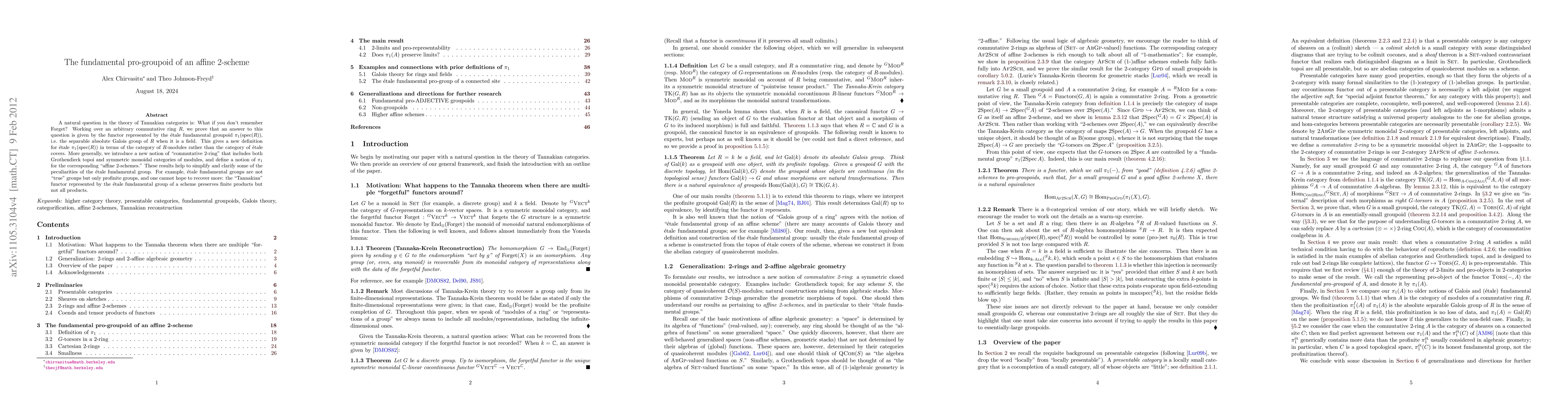 This paper introduces a new approach to understanding the fundamental group of affine 2-schemes using the concept of a 'commutative 2-ring'. It defines the etale fundamental groupoid of spec(R) via separable absolute Galois groups for fields, offering a fresh perspective that simplifies the peculiarities of etale fundamental groups, which are actually profinite groups and don't preserve all products.