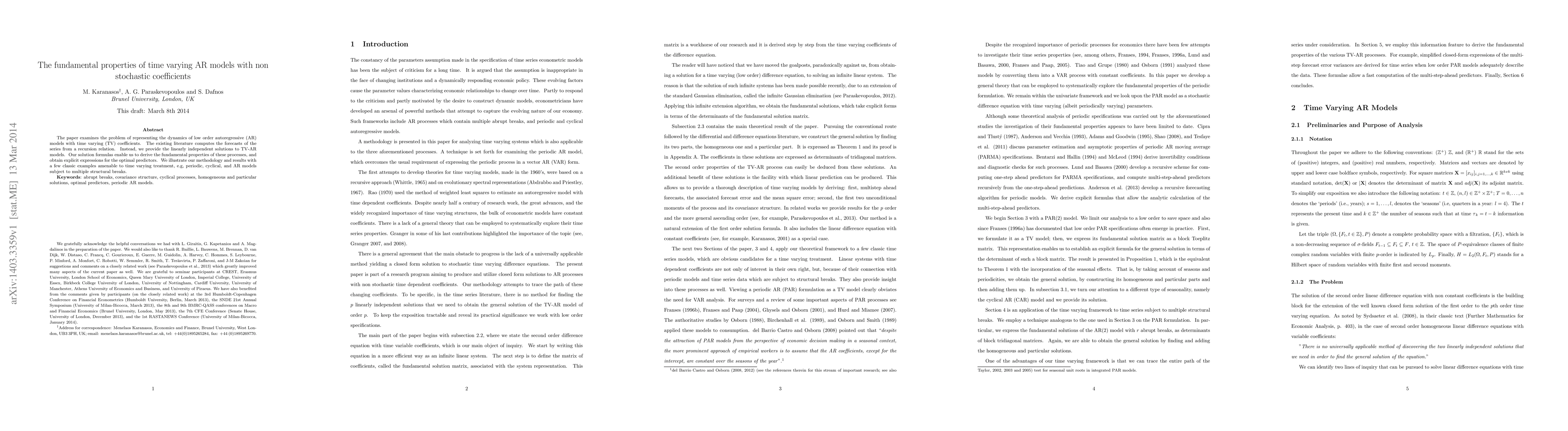 This paper develops a new approach to analyzing time-varying autoregressive (AR) models with non-stochastic coefficients, providing linearly independent solutions for forecasting and optimal predictor expressions.