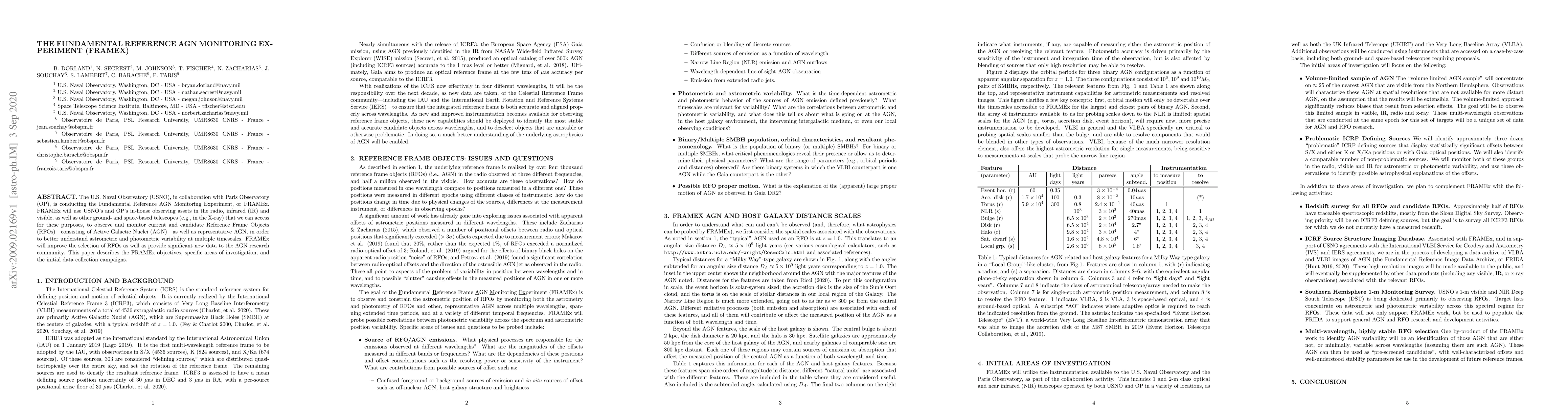 The U.S. Naval Observatory (USNO), in collaboration with Paris Observatory (OP), is conducting the Fundamental Reference AGN Monitoring Experiment, or FRAMEx. FRAMEx will use USNO's and OP's in-house observing assets in the radio, infrared (IR) and visible, as well as other ground- and space-based telescopes (e.g., in the X-ray) that we can access for these purposes, to observe and monitor current and candidate Reference Frame Objects (RFOs) -- consisting of Active Galactic Nuclei (AGN) -- as well as representative AGN, in order to better understand astrometric and photometric variability at multiple timescales. FRAMEx will improve the selection of RFOs as well as provide significant new data to the AGN research community. This paper describes the FRAMEx objectives, specific areas of investigation, and the initial data collection campaigns.