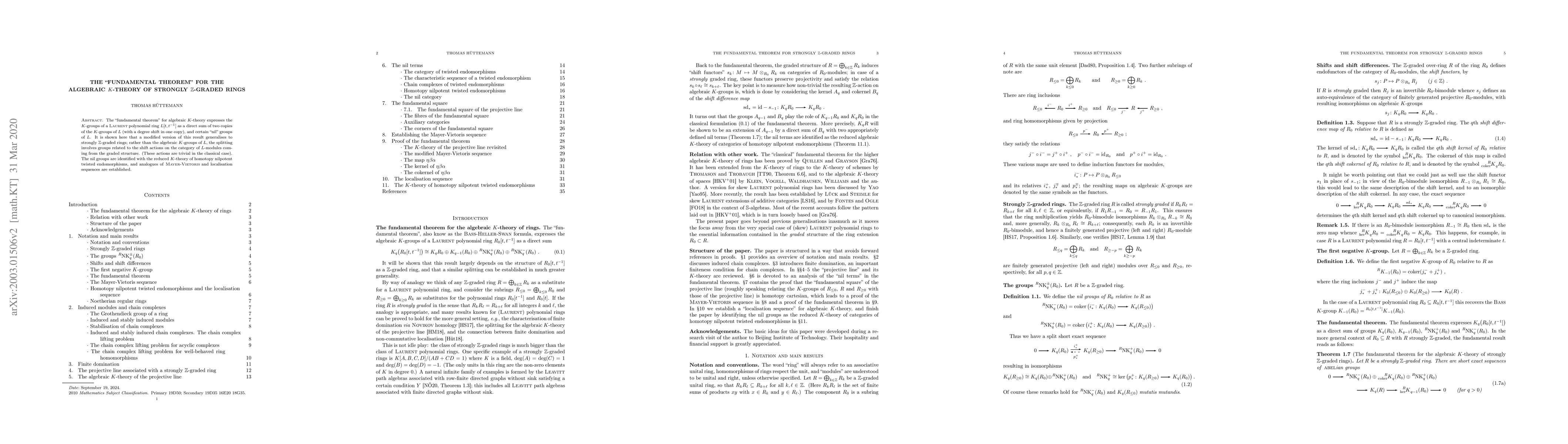 The "fundamental theorem" for algebraic $K$-theory expresses the $K$-groups of a Laurent polynomial ring $L[t,t^{-1}]$ as a direct sum of two copies of the $K$-groups of $L$ (with a degree shift in one copy), and certain "nil" groups of $L$. It is shown here that a modified version of this result generalises to strongly $\mathbb{Z}$-graded rings; rather than the algebraic $K$-groups of $L$, the splitting involves groups related to the shift actions on the category of $L$-modules coming from the graded structure. (These action are trivial in the classical case). The nil groups are identified with the reduced $K$-theory of homotopy nilpotent twisted endomorphisms, and analogues of Mayer-Vietoris and localisation sequences are established.