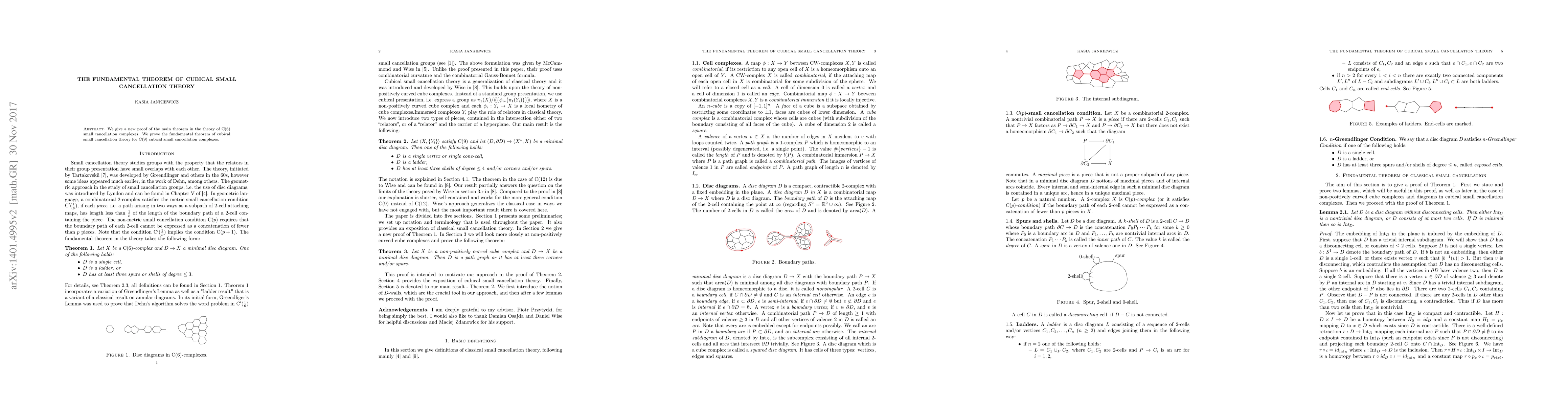 We give a new proof of the main theorem in the theory of C(6) small cancellation complexes. We prove the fundamental theorem of cubical small cancellation theory for C(9) cubical small cancellation complexes.