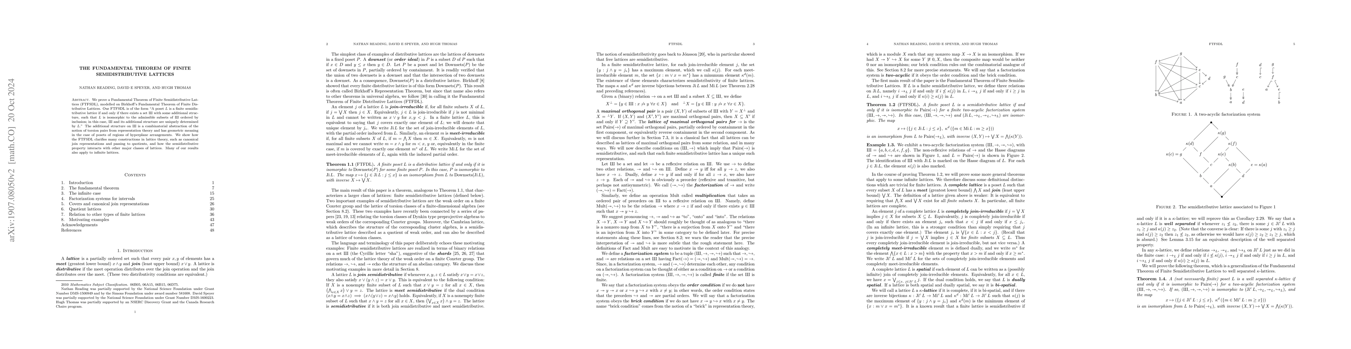 The paper proves a Fundamental Theorem of Finite Semidistributive Lattices (FTFSDL), establishing that a poset is a finite semidistributive lattice if it can be represented as the admissible subsets of a set Sha with additional structure, uniquely determined by the lattice. The theorem clarifies lattice constructions and interactions with other lattice classes.