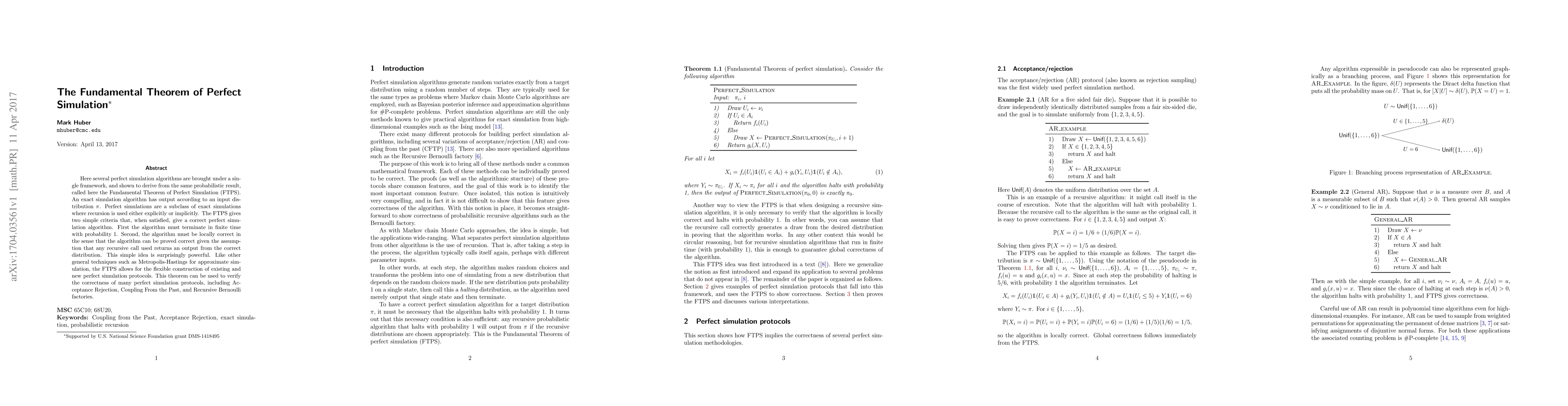 Here several perfect simulation algorithms are brought under a single framework, and shown to derive from the same probabilistic result, called here the Fundamental Theorem of Perfect Simulation (FTPS). An exact simulation algorithm has output according to an input distribution $\pi$. Perfect simulations are a subclass of exact simulations where recursion is used either explicitly or implicitly. The FTPS gives two simple criteria that, when satisfied, give a correct perfect simulation algorithm. First the algorithm must terminate in finite time with probability 1. Second, the algorithm must be locally correct in the sense that the algorithm can be proved correct given the assumption that any recursive call used returns an output from the correct distribution. This simple idea is surprisingly powerful. Like other general techniques such as Metropolis-Hastings for approximate simulation, the FTPS allows for the flexible construction of existing and new perfect simulation protocols. This theorem can be used to verify the correctness of many perfect simulation protocols, including Acceptance Rejection, Coupling From the Past, and Recursive Bernoulli factories.