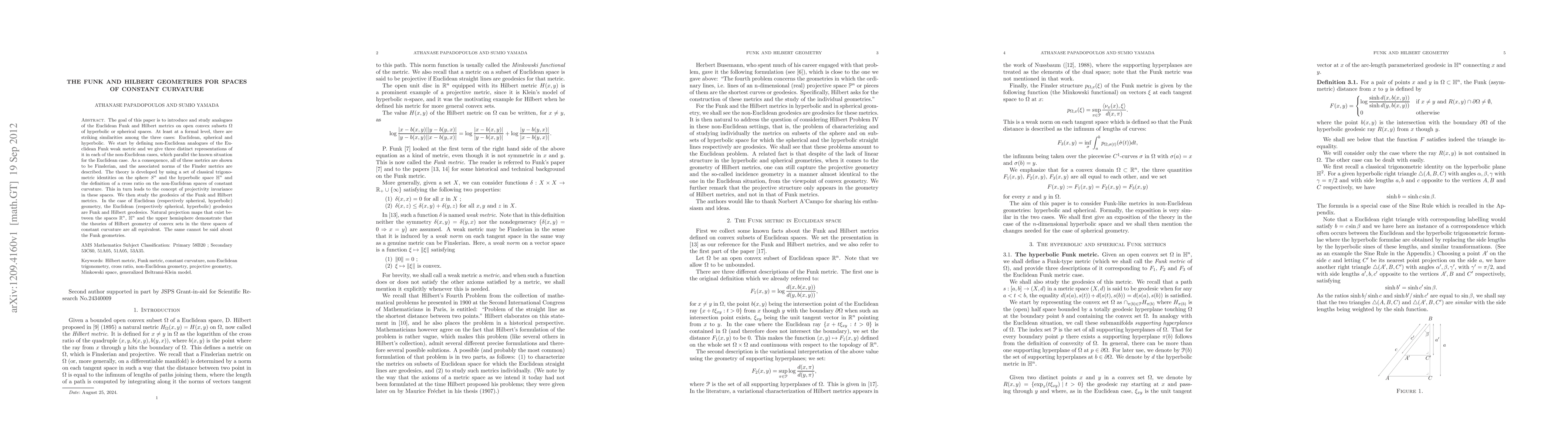This paper introduces and studies non-Euclidean analogues of the Euclidean Funk and Hilbert metrics on open convex subsets of hyperbolic and spherical spaces, showing their Finslerian properties and geodesics, and demonstrating the equivalence of their Hilbert geometry theories across these spaces.