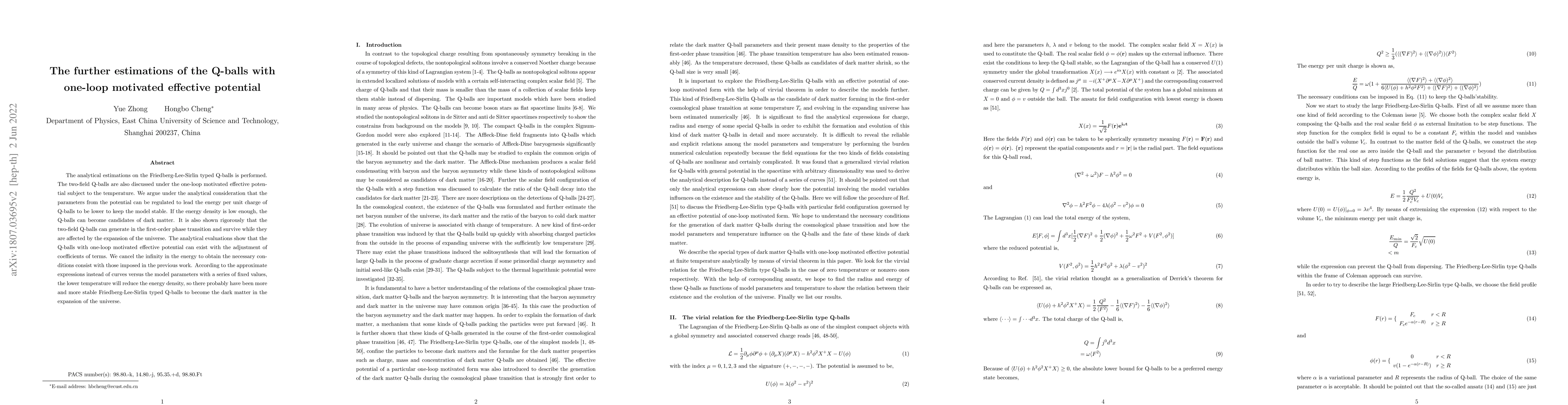 The analytical estimations on the Friedberg-Lee-Sirlin typed Q-balls is performed. The two-field Q-balls are also discussed under the one-loop motivated effective potential subject to the temperature. We argue under the analytical consideration that the parameters from the potential can be regulated to lead the energy per unit charge of Q-balls to be lower to keep the model stable. If the energy density is low enough, the Q-balls can become candidates of dark matter. It is also shown rigorously that the two-field Q-balls can generate in the first-order phase transition and survive while they are affected by the expansion of the universe. The analytical evaluations show that the Q-balls with one-loop motivated effective potential can exist with the adjustment of coefficients of terms. We cancel the infinity in the energy to obtain the necessary conditions consist with those imposed in the previous work. According to the approximate expressions instead of curves versus the model parameters with a series of fixed values, the lower temperature will reduce the energy density, so there probably have been more and more stable Friedberg-Lee-Sirlin typed Q-balls to become the dark matter in the expansion of the universe.