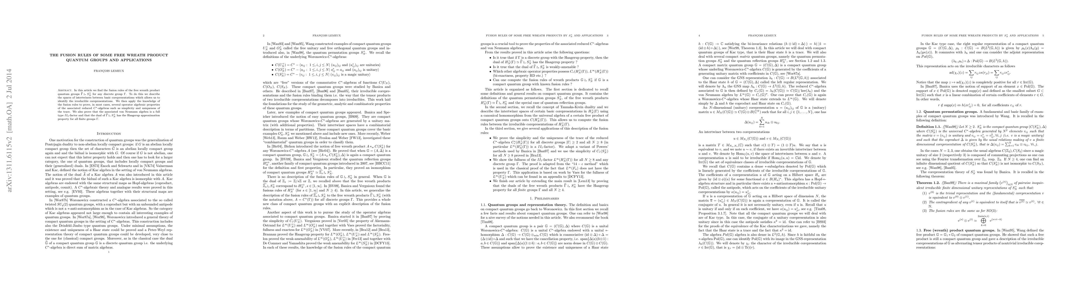 In this paper we find the fusion rules of the free wreath products $\widehat{\Gamma}\wr_*S_N^+$ for any (discrete) group $\Gamma$. To do this we describe the spaces of intertwiners between basic corepresentations which allows us to identify the irreducible corepresentations. We then apply the knowledge of the fusion rules to prove, in most cases, several operator algebraic properties of the associated reduced $C^*$-algebras such as simplicity and uniqueness of the trace. We also prove that the associated von Neumann algebra is a full type $II_1$-factor and that the dual of $\widehat{\Gamma}\wr_*S_N^+$ has the Haagerup approximation property for all finite groups $\Gamma$.