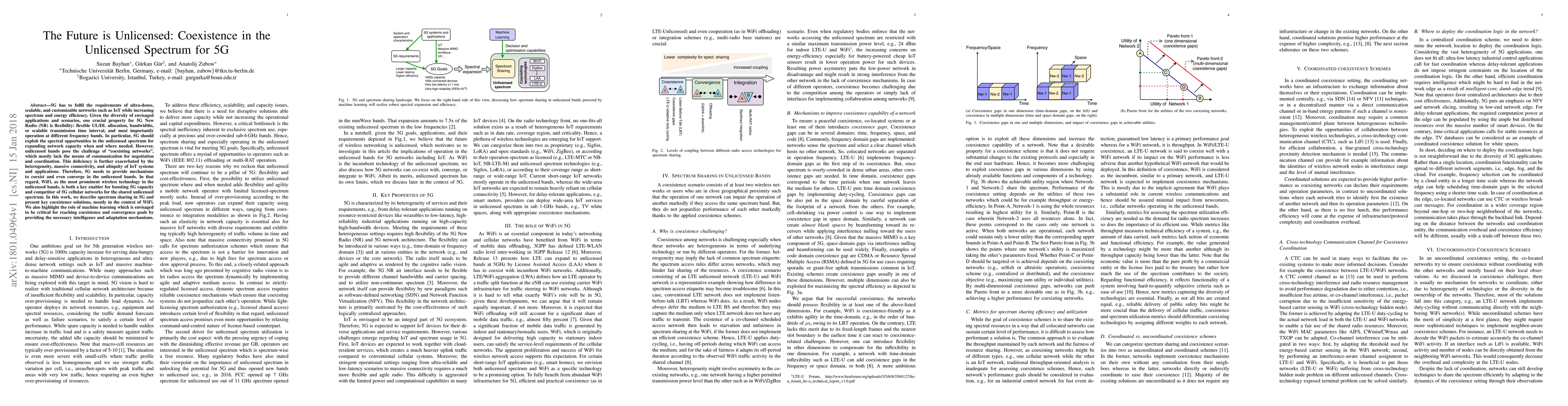 This paper explores the challenges of spectrum sharing and coexistence in unlicensed bands for 5G networks, focusing on the integration of IoT and flexible frequency operations. It highlights the necessity for advanced coexistence solutions, particularly in relation to WiFi, and emphasizes the role of machine learning in achieving efficient spectrum utilization and network convergence.