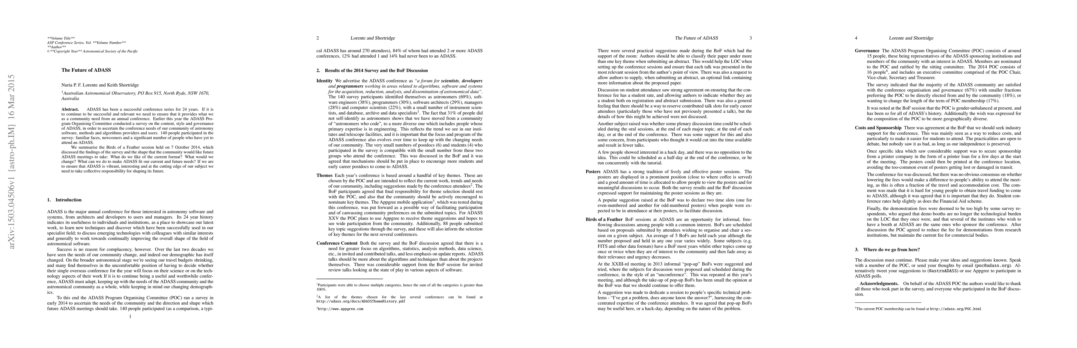 The ADASS conference aims to stay relevant by addressing community needs through a survey, which identified areas for improvement and suggestions for the future of the event. To ensure its success, collective responsibility is key to shaping its format and content.