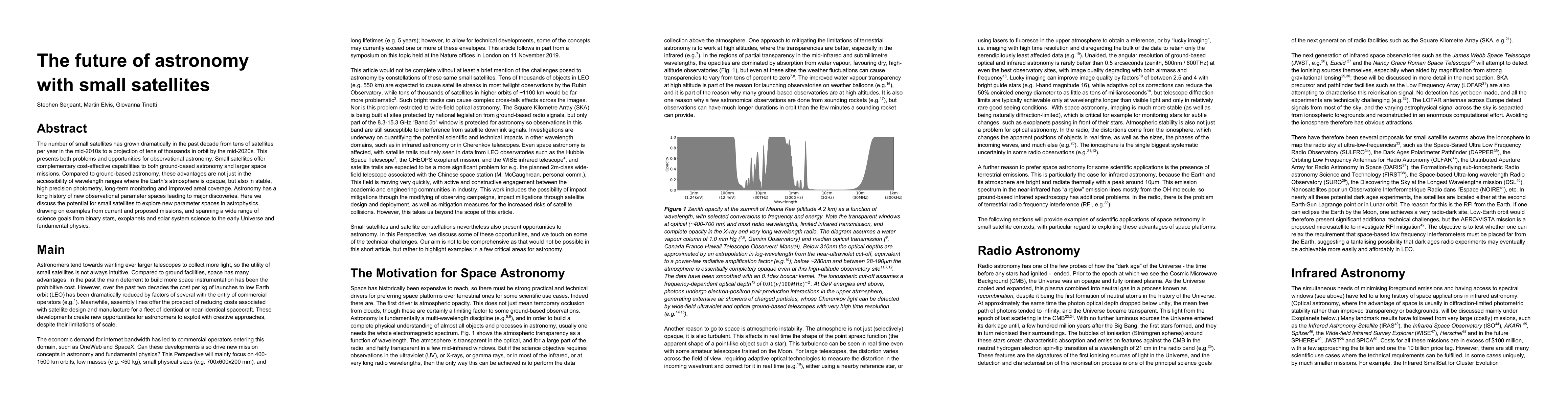 This paper explores the transformative potential of small satellites in advancing observational astronomy, highlighting their cost-effective capabilities and ability to access previously inaccessible wavelength ranges. It discusses how these satellites can lead to major discoveries in astrophysics, from exoplanets to fundamental physics, by leveraging stable, high-precision photometry and long-term monitoring.