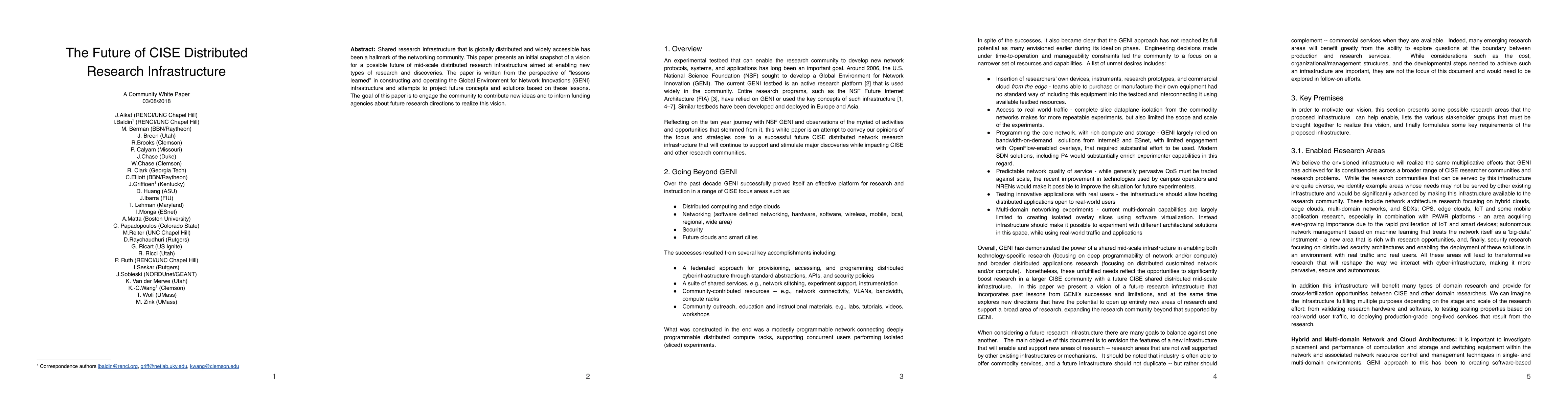 Shared research infrastructure that is globally distributed and widely accessible has been a hallmark of the networking community. This paper presents an initial snapshot of a vision for a possible future of mid-scale distributed research infrastructure aimed at enabling new types of research and discoveries. The paper is written from the perspective of "lessons learned" in constructing and operating the Global Environment for Network Innovations (GENI) infrastructure and attempts to project future concepts and solutions based on these lessons. The goal of this paper is to engage the community to contribute new ideas and to inform funding agencies about future research directions to realize this vision.