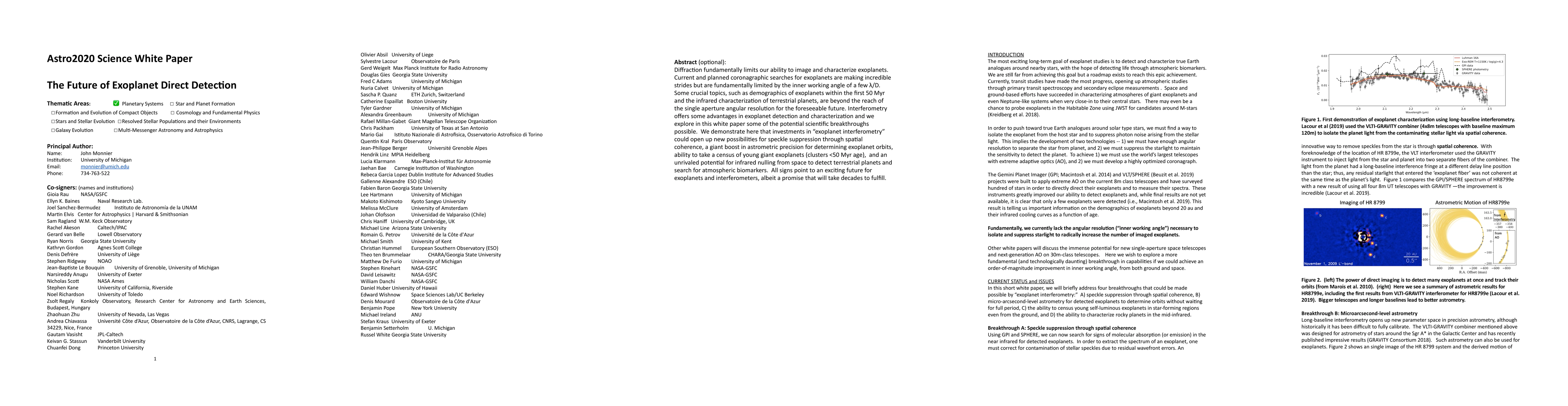 This paper discusses the limitations of current diffraction-based methods in exoplanet detection and highlights the potential of interferometry to overcome these limitations. It emphasizes the promise of interferometry for future breakthroughs in exoplanet demographics, astrometric precision, and infrared characterization, though acknowledges the long-term development required for these advancements.
