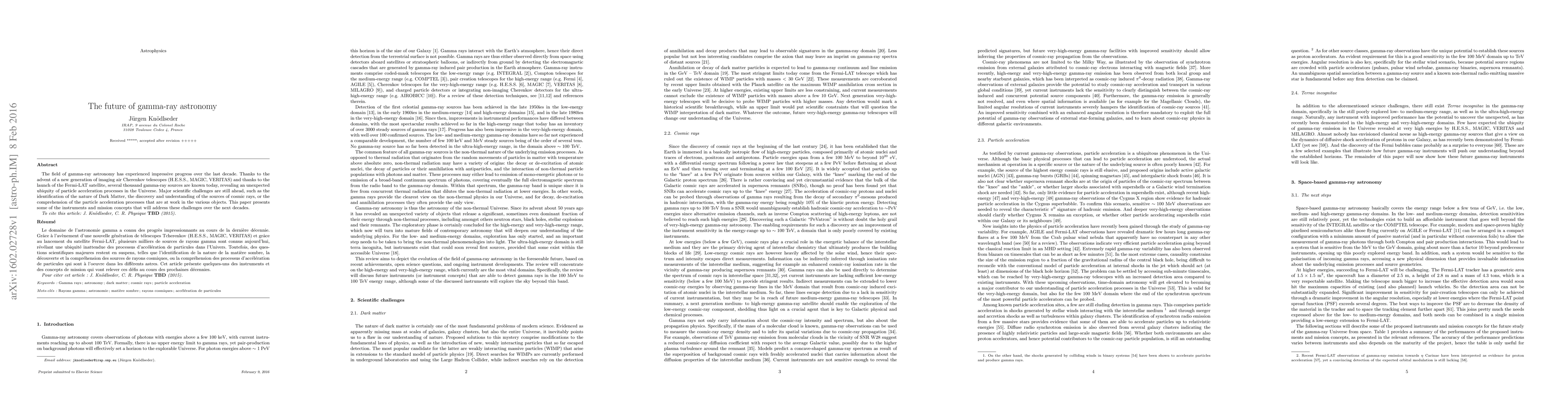 The field of gamma-ray astronomy has experienced impressive progress over the last decade. Thanks to the advent of a new generation of imaging air Cherenkov telescopes (H.E.S.S., MAGIC, VERITAS) and thanks to the launch of the Fermi-LAT satellite, several thousand gamma-ray sources are known today, revealing an unexpected ubiquity of particle acceleration processes in the Universe. Major scientific challenges are still ahead, such as the identification of the nature of Dark Matter, the discovery and understanding of the sources of cosmic rays, or the comprehension of the particle acceleration processes that are at work in the various objects. This paper presents some of the instruments and mission concepts that will address these challenges over the next decades.
