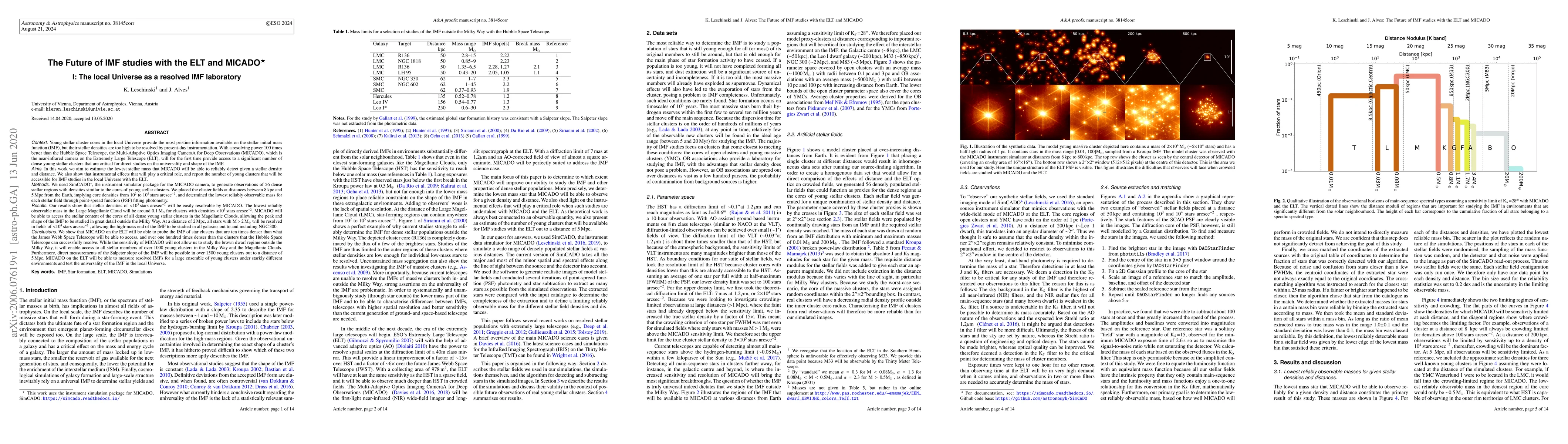 This paper estimates the lowest stellar mass detectable by MICADO on the ELT, showing it can reliably observe stars as low as 0.1 M_sun in the Magellanic Clouds. It concludes that MICADO will enable detailed studies of the Initial Mass Function (IMF) in dense young stellar clusters throughout the local Universe.