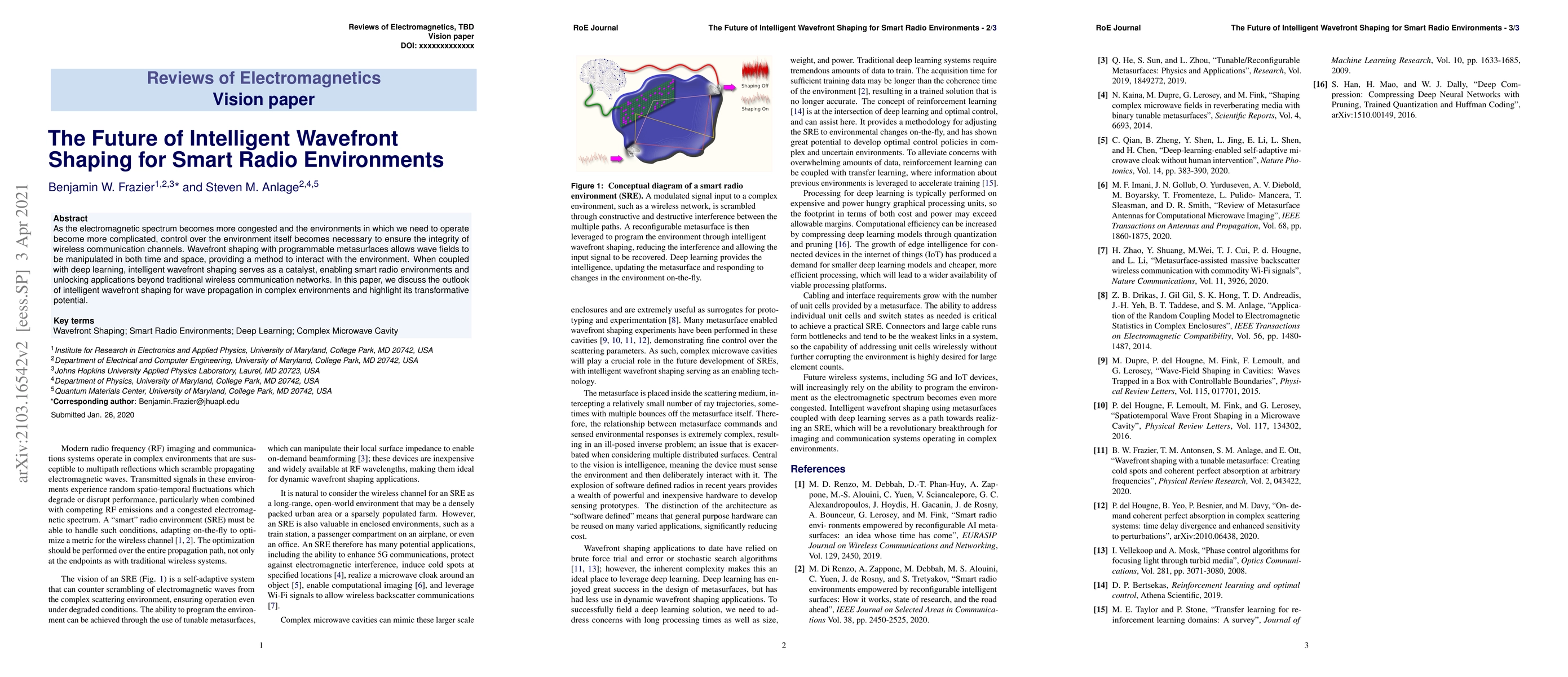 This paper explores the potential of intelligent wavefront shaping using programmable metasurfaces and deep learning to manage complex radio environments, aiming to enhance wireless communication integrity and enable innovative applications beyond conventional networks. The transformative impact of this technology in future smart radio environments is highlighted.