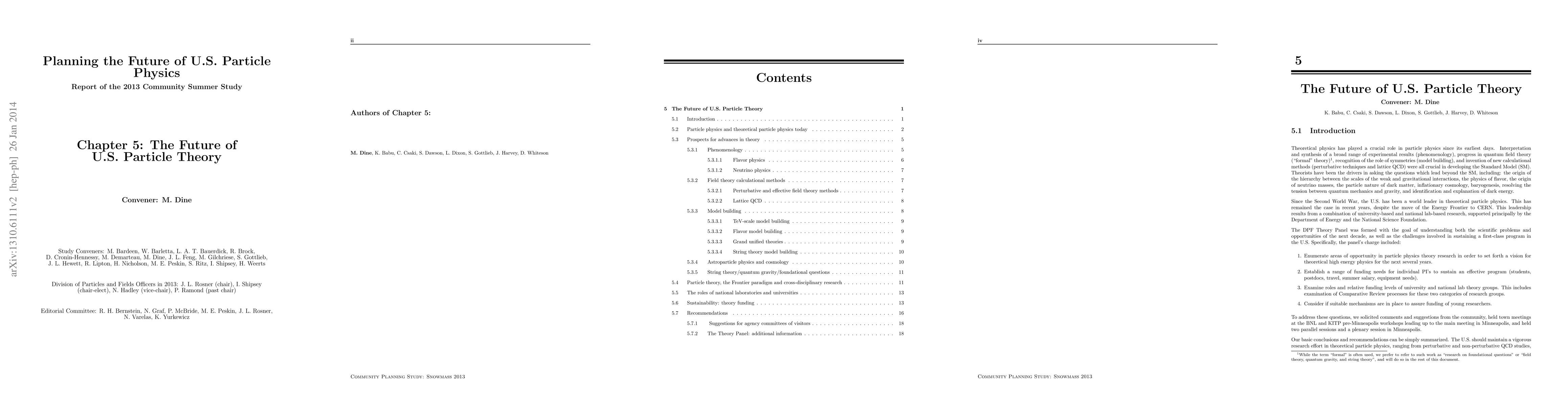 This report by the DPF Theory Panel outlines the scientific challenges and opportunities for U.S. theoretical particle physics over the next decade, emphasizing the need to sustain a leading research program. It provides strategic recommendations to address these issues.