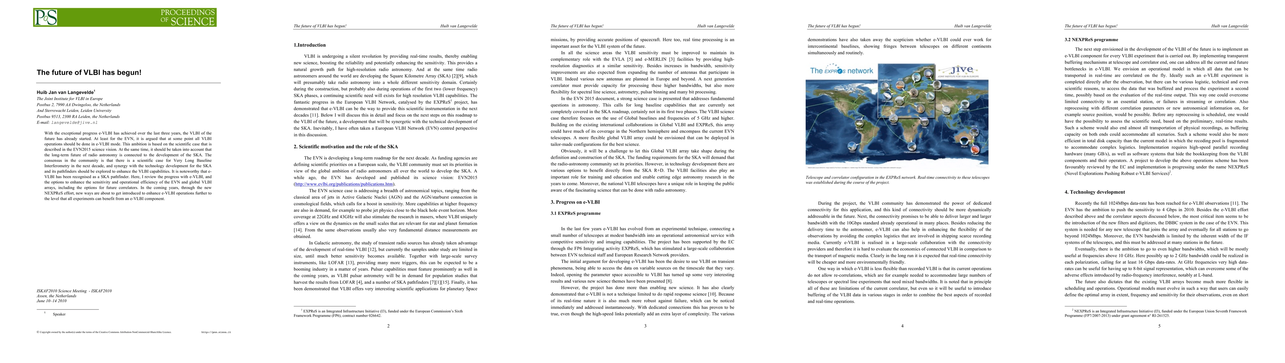 With the exceptional progress e-VLBI has achieved over the last three years, the VLBI of the future has already started. At least for the EVN, it is argued that at some point all VLBI operations should be done in e-VLBI mode. This ambition is based on the scientific case that is described in the EVN2015 science vision. At the same time, it should be taken into account that the long-term future of radio astronomy is connected to the development of the SKA. The consensus in the community is that there is a scientific case for Very Long Baseline Interferometry in the next decade, and synergy with the technology development for the SKA and its pathfinders should be explored to enhance the VLBI capabilities. It is noteworthy that e- VLBI has been recognised as a SKA pathfinder. Here, I review the progress with e-VLBI, and the options to enhance the sensitivity and operational efficiency of the EVN and global VLBI arrays, including the options for future correlators. In the coming years, through the new NEXPReS effort, new ways are about to get introduced to enhance e-VLBI operations further to the level that all experiments can benefit from an e-VLBI component.