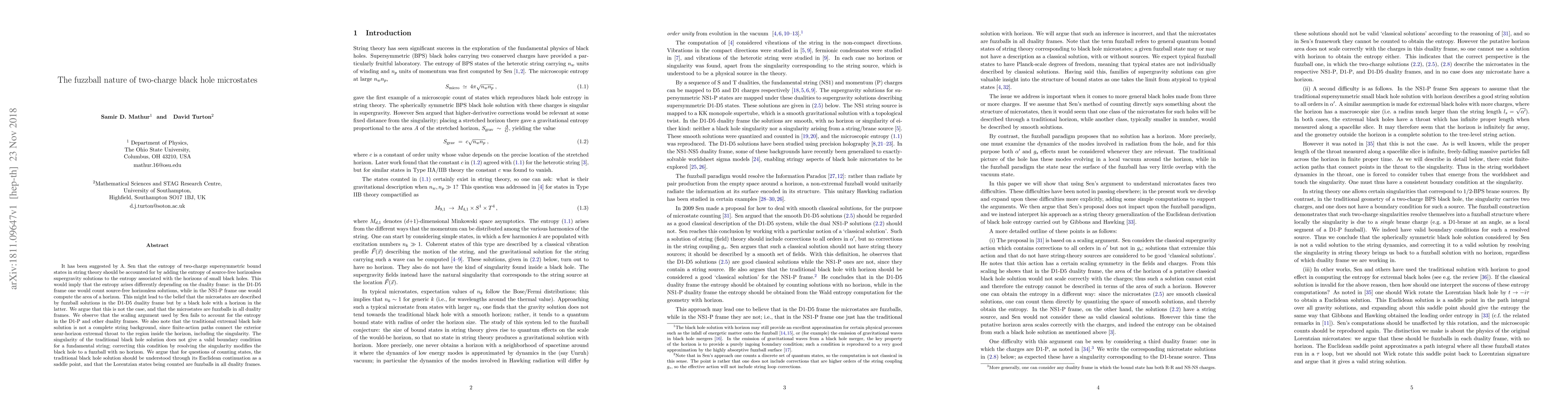 It has been suggested by A. Sen that the entropy of two-charge supersymmetric bound states in string theory should be accounted for by adding the entropy of source-free horizonless supergravity solutions to the entropy associated with the horizons of small black holes. This would imply that the entropy arises differently depending on the duality frame: in the D1-D5 frame one would count source-free horizonless solutions, while in the NS1-P frame one would compute the area of a horizon. This might lead to the belief that the microstates are described by fuzzball solutions in the D1-D5 duality frame but by a black hole with a horizon in the latter. We argue that this is not the case, and that the microstates are fuzzballs in all duality frames. We observe that the scaling argument used by Sen fails to account for the entropy in the D1-P and other duality frames. We also note that the traditional extremal black hole solution is not a complete string background, since finite-action paths connect the exterior near-horizon extremal throat to the region inside the horizon, including the singularity. The singularity of the traditional black hole solution does not give a valid boundary condition for a fundamental string; correcting this condition by resolving the singularity modifies the black hole to a fuzzball with no horizon. We argue that for questions of counting states, the traditional black hole solution should be understood through its Euclidean continuation as a saddle point, and that the Lorentzian states being counted are fuzzballs in all duality frames.