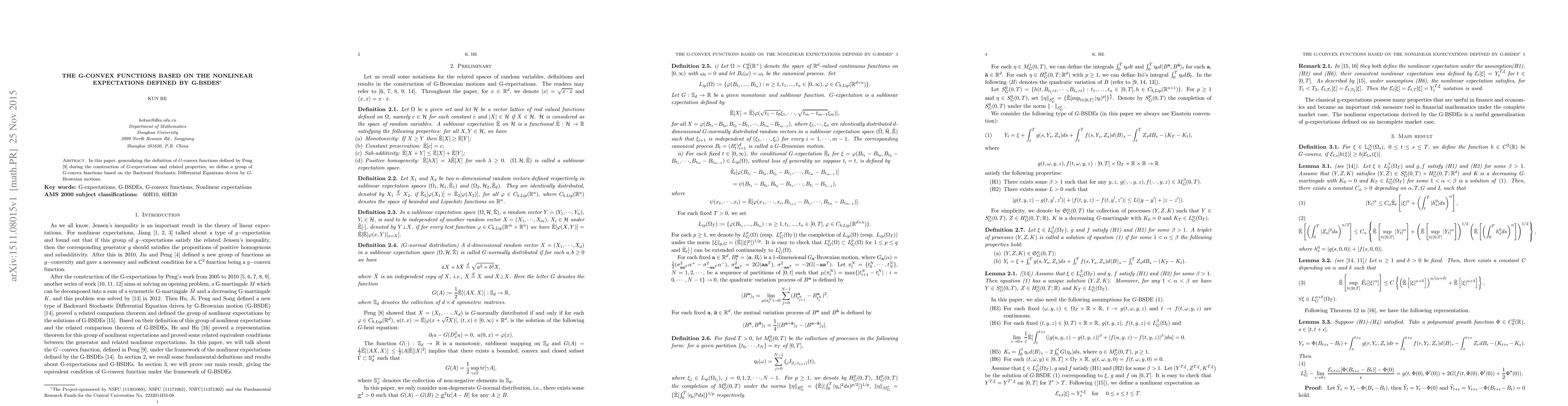 Researchers define a new class of G-convex functions based on nonlinear expectations defined by G-Brownian motions, extending existing work on G-expectations. This generalization has implications for the construction of G-expectations and their related properties.