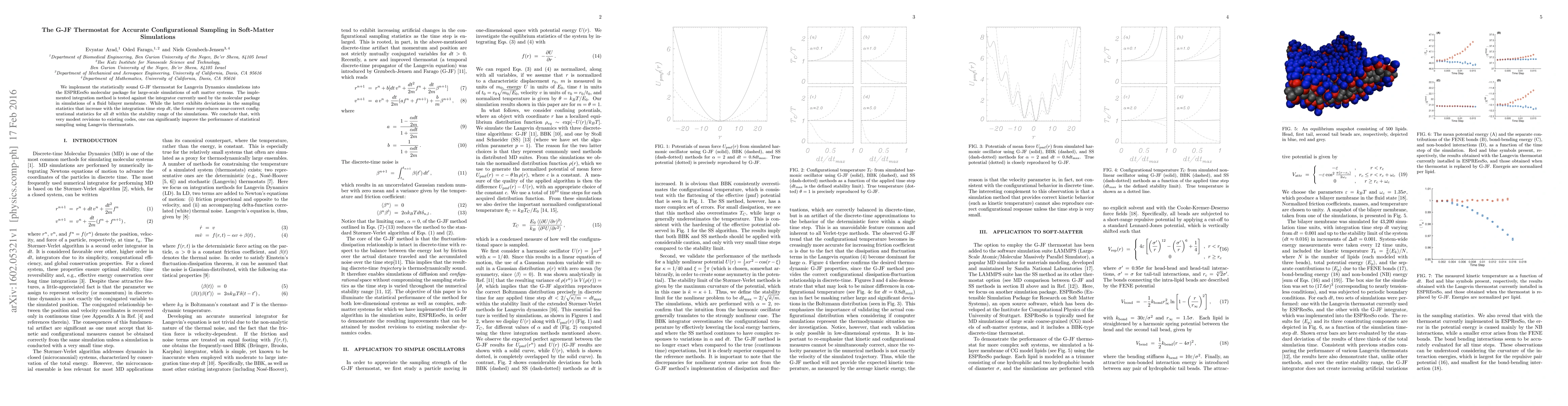 The G-JF thermostat is implemented into ESPREesSo for enhanced Langevin Dynamics simulations of soft matter. It significantly improves configurational sampling accuracy compared to the existing integrator, demonstrating near-correct statistics over varying time steps.
