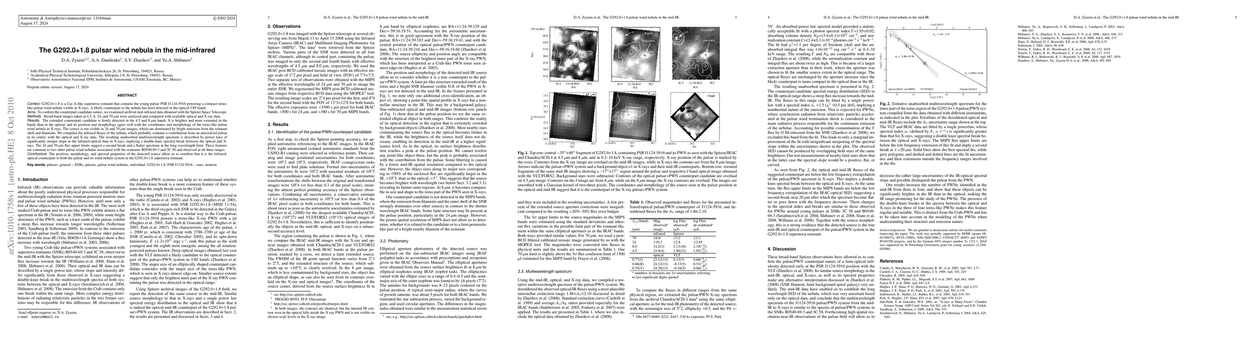 The G292.0+1.8 supernova remnant's pulsar wind nebula has been confirmed in mid-infrared data from the Spitzer Space Telescope, showing a bright, extended counterpart in 4.5 and 8 micron bands, consistent with X-ray morphology and suggesting a double-knee spectral break. The nebula's infrared-optical counterpart is distinct from the remnant shell's emission.