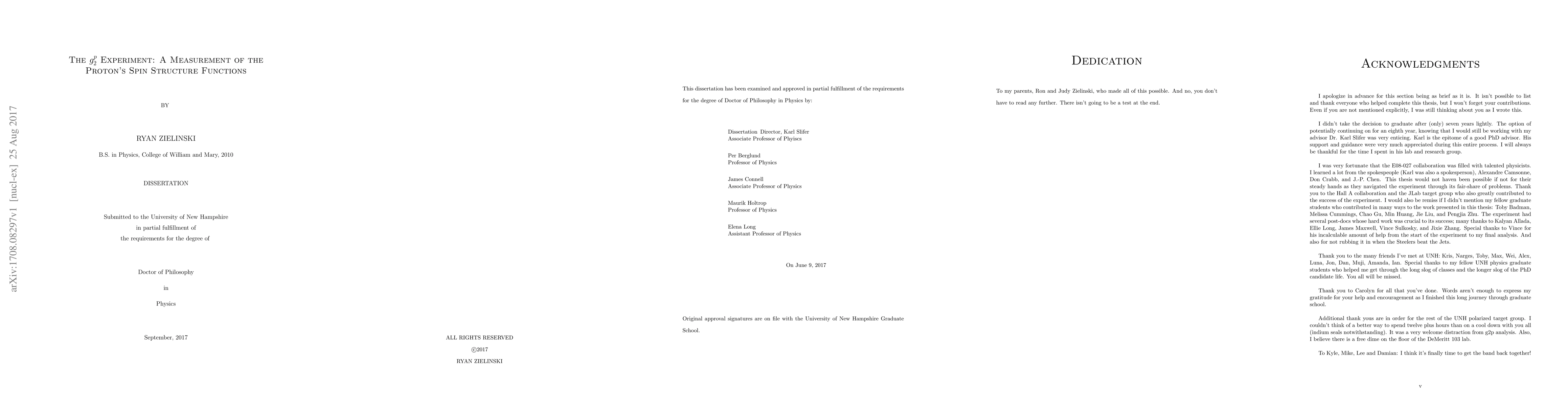 The g2p experiment measured proton spin structure functions at Jefferson Lab, finding a significant increase in statistical precision and contradicting previous model results with a discrepancy over 100%.