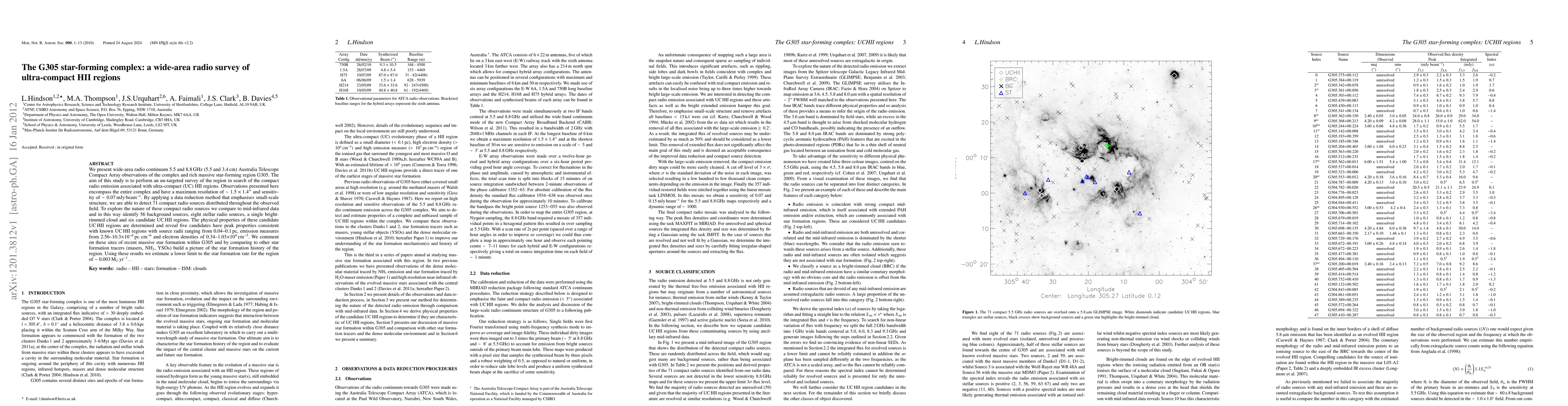 This study presents a wide-area radio survey of the G305 star-forming complex, identifying 71 compact radio sources, including six candidate ultra-compact HII regions. The research estimates a lower limit star formation rate of ~0.003 M☉ yr^-1 for the region.