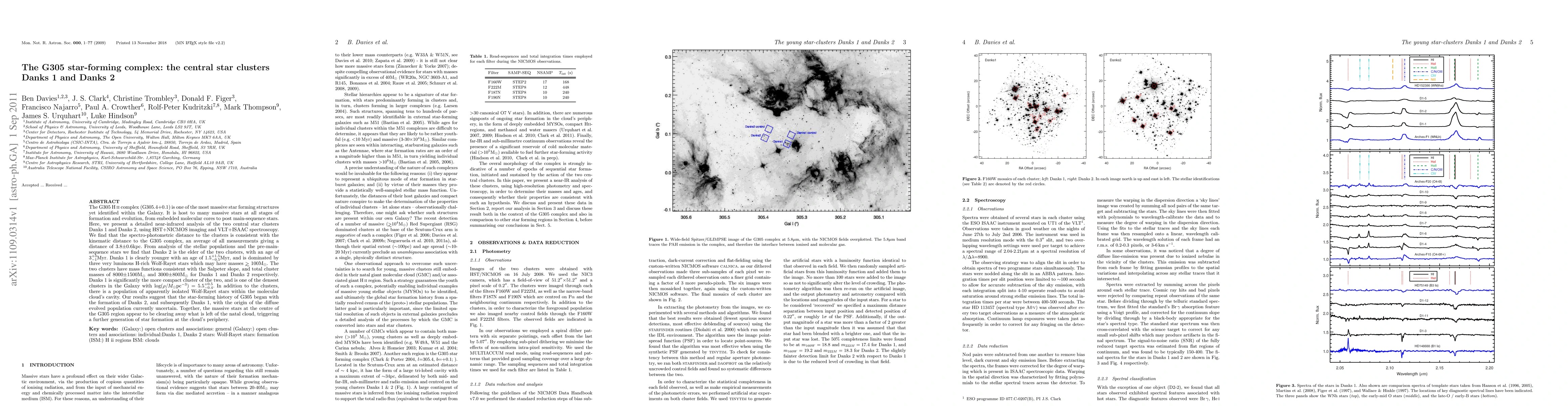 The G305 HII complex (G305.4+0.1) is one of the most massive star forming structures yet identified within the Galaxy. It is host to many massive stars at all stages of formation and evolution, from embedded molecular cores to post main-sequence stars. Here, we present a detailed near-infrared analysis of the two central star clusters Danks 1 and Danks 2, using HST+NICMOS imaging and VLT+ISAAC spectroscopy. We find that the spectro-photometric distance to the clusters is consistent with the kinematic distance to the G305 complex, an average of all measurements giving a distance of 3.8\pm0.6kpc. From analysis of the stellar populations and the pre-main-sequence stars we find that Danks 2 is the elder of the two clusters, with an age of 3^{+3}_{-1}Myr. Danks 1 is clearly younger with an age of 1.5^{+1.5}_{-0.5}Myr, and is dominated by three very luminous H-rich Wolf-Rayet stars which may have masses \geq100\msun. The two clusters have mass functions consistent with the Salpeter slope, and total cluster masses of 8000\pm1500\msun\ and 3000\pm800\msun\ for Danks 1 and Danks 2 respectively. Danks 1 is significantly the more compact cluster of the two, and is one of the densest clusters in the Galaxy with $\log (\rho/M_{\odot}{\rm pc}^{-3}) = 5.5^{+0.5}_{-0.4}$. In addition to the clusters, there is a population of apparently isolated Wolf-Rayet stars within the molecular cloud's cavity. Our results suggest that the star-forming history of G305 began with the formation of Danks 2, and subsequently Danks 1, with the origin of the diffuse evolved population currently uncertain. Together, the massive stars at the centre of the G305 region appear to be clearing away what is left of the natal cloud, triggering a further generation of star formation at the cloud's periphery.
