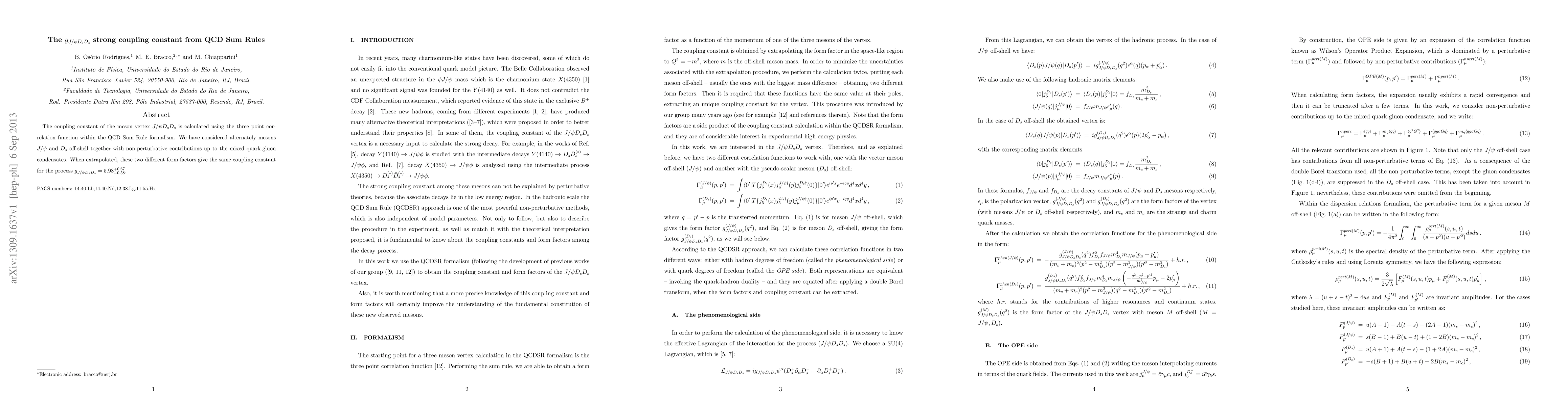 The coupling constant of the meson vertex $J/\psi D_s D_s$ is calculated using the three point correlation function within the QCD Sum Rule formalism. We have considered alternately mesons $J/\psi$ and $D_s$ off-shell together with non-perturbative contributions up to the mixed quark-gluon condensates. When extrapolated, these two different form factors give the same coupling constant for the process $g_{J/\psi D_s D_s} = 5.98^{+0.67}_{-0.58}$.