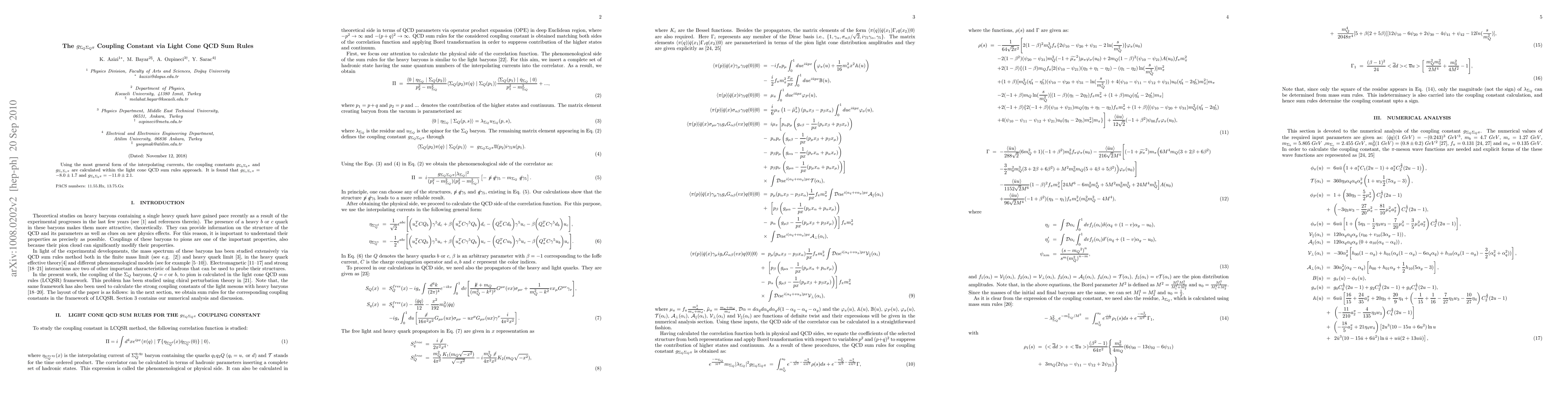 This paper calculates the coupling constants $g_{\Sigma_b\Sigma_b\pi}$ and $g_{\Sigma_c\Sigma_c\pi}$ using light cone QCD sum rules, finding $g_{{\Sigma_{c}\Sigma_{c}\pi}}=-8.0\pm1.7$ and $g_{{\Sigma_{b}\Sigma_{b}\pi}}=-11.0\pm2.1$. These results provide insights into the interactions between heavy baryons and pions.