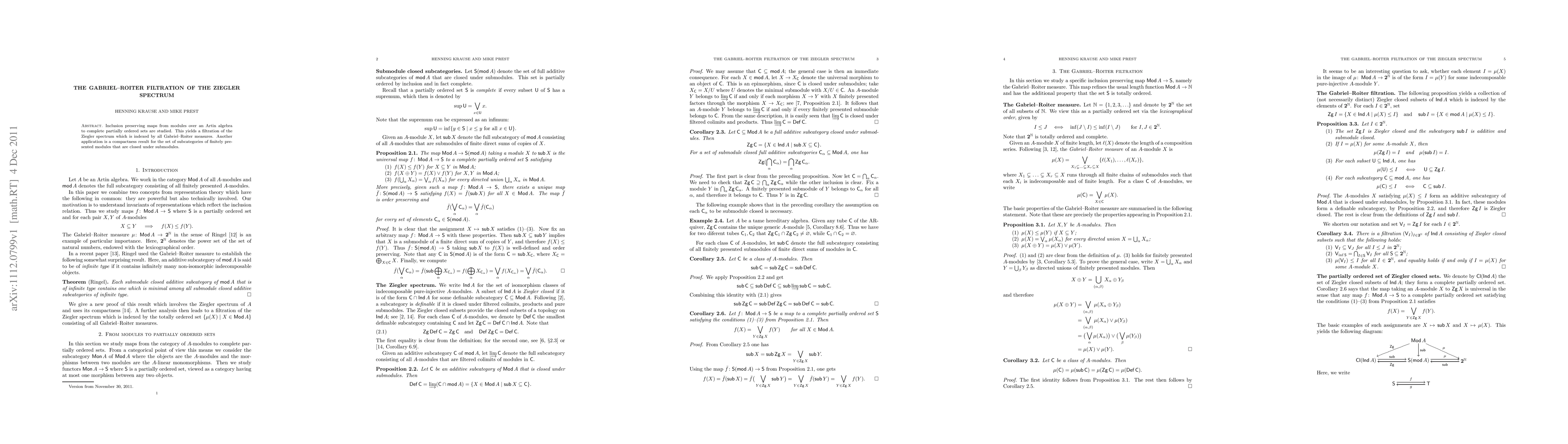 The paper explores inclusion-preserving maps from modules over an Artin algebra to complete partially ordered sets, leading to a filtration of the Ziegler spectrum indexed by Gabriel-Roiter measures, and establishes a compactness result for subcategories of finitely presented modules closed under submodules.