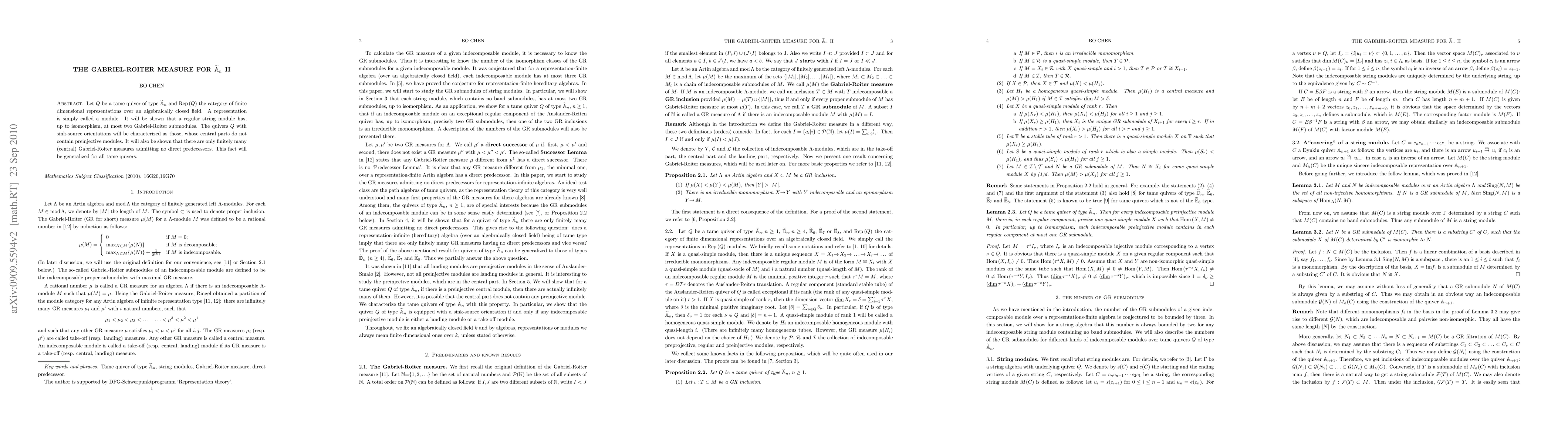 Summary: This paper investigates tame quivers of type $\widetilde{\mathbb{A}}_n$ and their representations, proving that regular string modules have at most two Gabriel-Roiter submodules. It characterizes quivers with sink-source orientations based on the absence of preinjective modules in their central parts and shows that there are only finitely many Gabriel-Roiter measures without direct predecessors, a fact generalized for all tame quivers.
