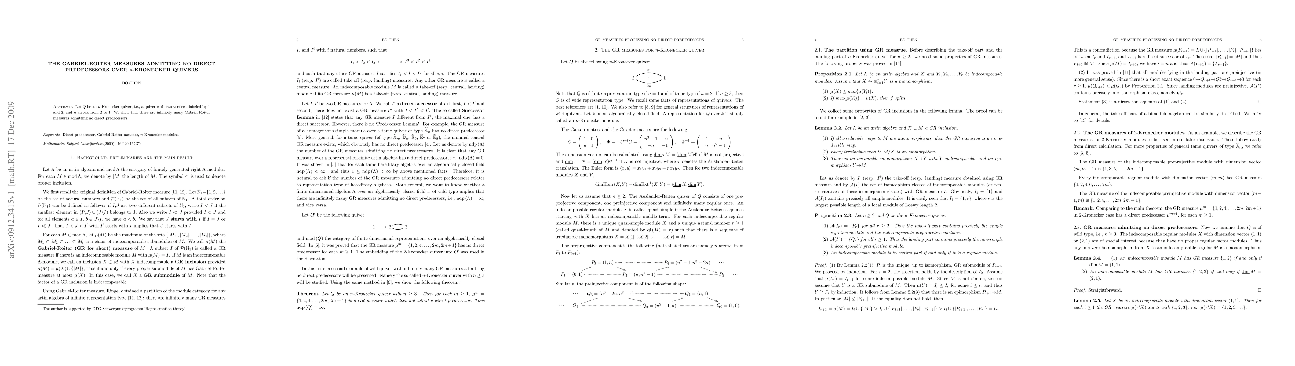 Summary: This paper investigates $n$-Kronecker quivers with two vertices and $n$ arrows from vertex 2 to vertex 1, proving the existence of infinitely many Gabriel-Roiter measures that do not have any direct predecessors.