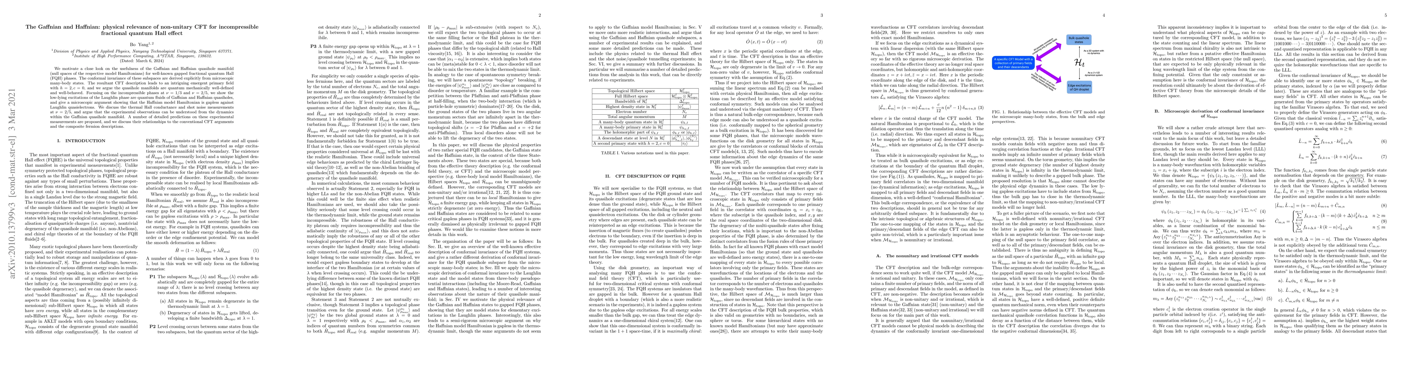 This paper explores the relevance of non-unitary conformal field theory (CFT) for understanding the fractional quantum Hall effect, specifically focusing on the Gaffnian and Haffnian quasihole manifolds. It proposes that these manifolds describe low-lying excitations in incompressible phases at $\nu=1/3$ and $\nu=2/5$, and provides predictions for thermal Hall conductance and shot noise measurements.