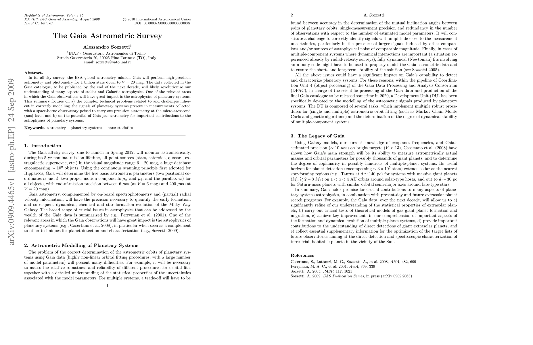In its all-sky survey, the ESA global astrometry mission Gaia will perform high-precision astrometry and photometry for 1 billion stars down to $V = 20$ mag. The data collected in the Gaia catalogue, to be published by the end of the next decade, will likely revolutionize our understanding of many aspects of stellar and Galactic astrophysics. One of the relevant areas in which the Gaia observations will have great impact is the astrophysics of planetary systems. This summary focuses on a) the complex technical problems related to and challenges inherent in correctly modelling the signals of planetary systems present in measurements collected with a space-borne observatory poised to carry out precision astrometry at the micro-arcsecond ($\mu$as) level, and b) on the potential of Gaia $\mu$as astrometry for important contributions to the astrophysics of planetary systems.
