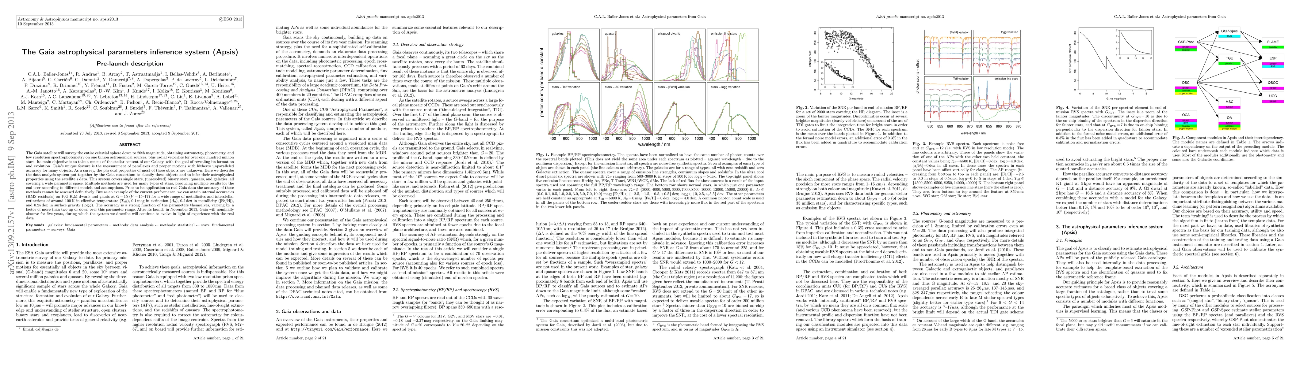 The Gaia satellite aims to survey the entire celestial sphere, measuring astrometry, photometry, and spectrophotometry for one billion astronomical objects. The Gaia Astrophysical Parameters Inference System (Apsis) is designed to classify these objects and infer their astrophysical properties, achieving internal accuracies of around 100K in temperature, 0.1mag in extinction, and 0.2dex in metallicity for certain types of stars.