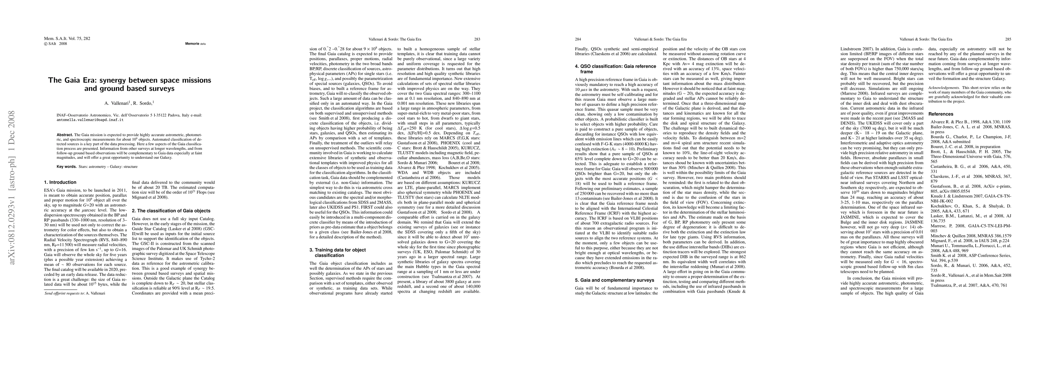 The Gaia mission aims to deliver precise astrometric, photometric, and spectroscopic data for a billion objects, with automated classification crucial for data processing. Complementary ground-based surveys and follow-up observations will enhance Gaia's findings, particularly for faint objects, aiding in a deeper understanding of our Galaxy.
