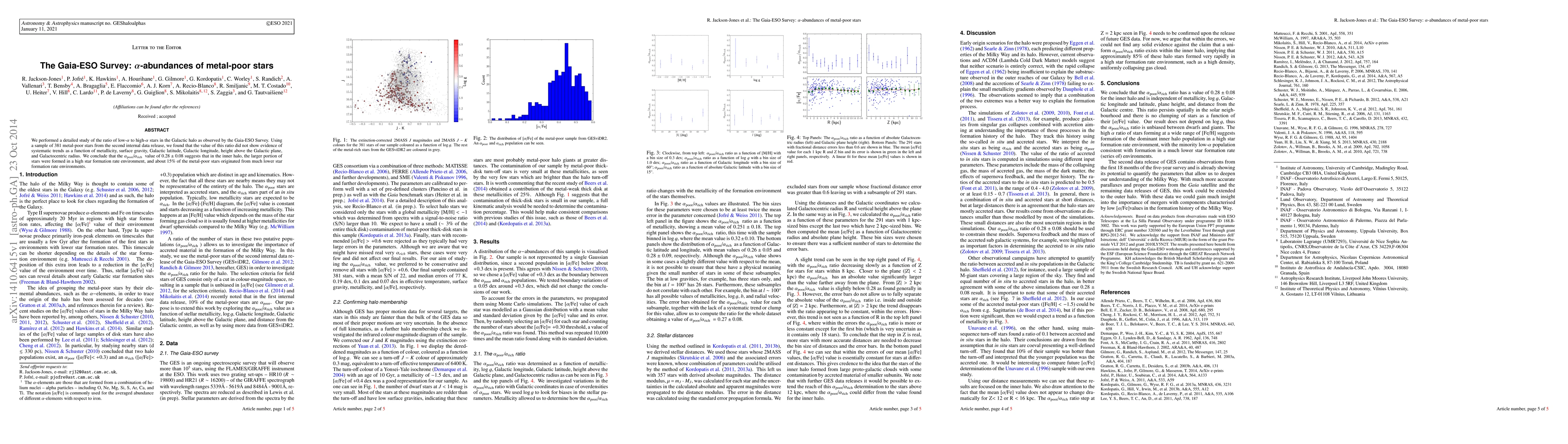 The Gaia-ESO Survey analyzed the ratio of low- to high-α stars in the Galactic halo, finding no systematic trends with various galactic parameters. The α-poor/α-rich ratio of 0.28 ± 0.08 indicates that most stars formed in high star formation rate environments, with 15% originating from lower star formation rate environments.