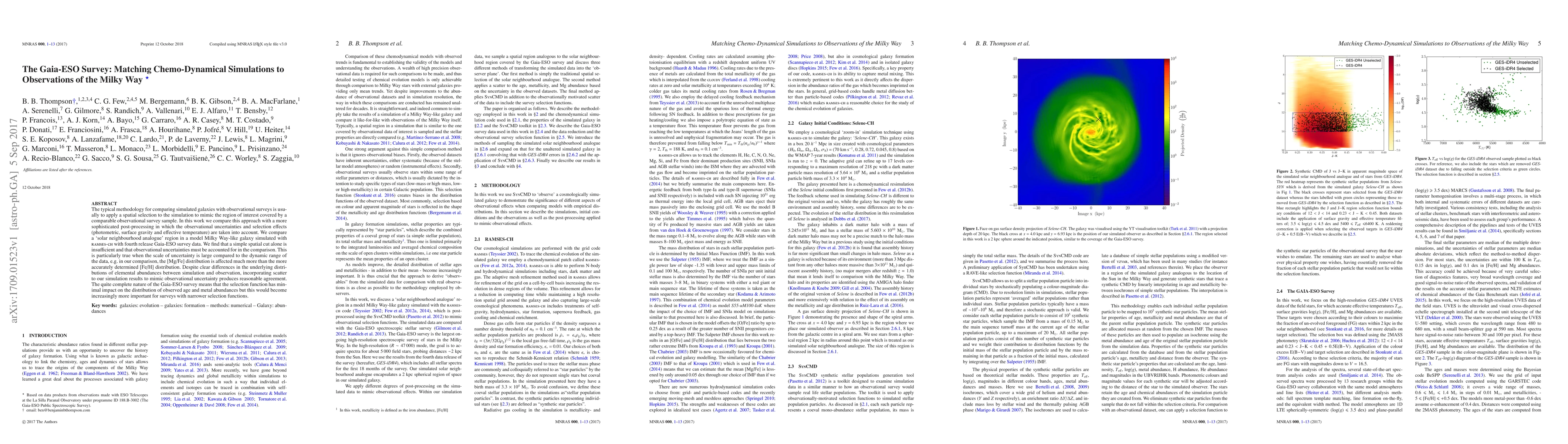 The Gaia-ESO Survey investigates the Milky Way by comparing chemo-dynamical simulations to observational data, finding that simple spatial selection is insufficient. Incorporating observational uncertainties and selection effects leads to better agreement between simulated and observed elemental abundance distributions.