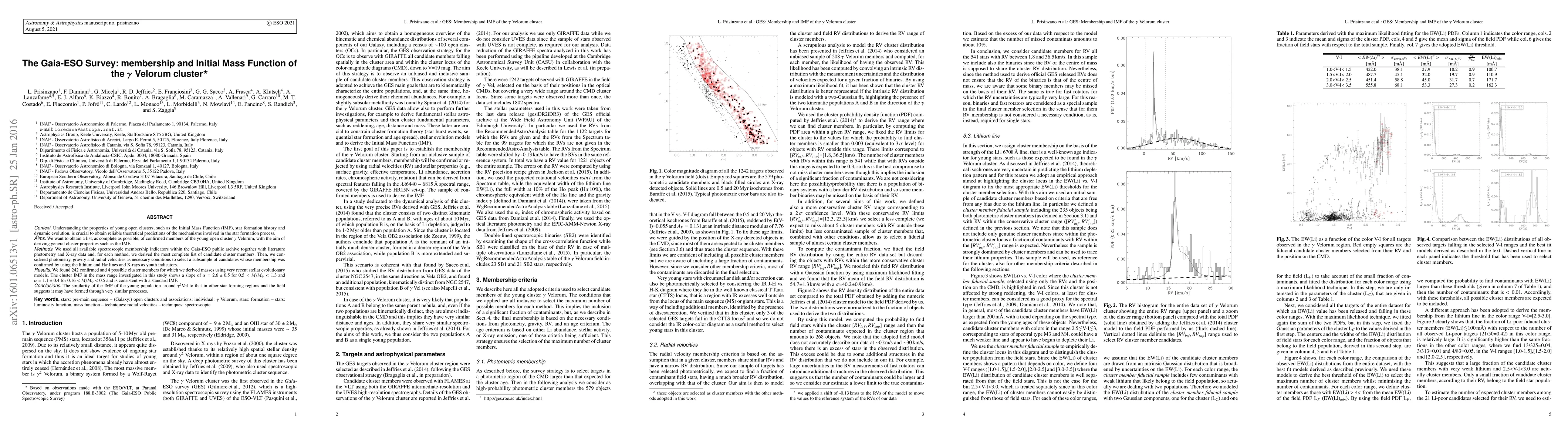 The Gaia-ESO Survey found 242 confirmed members of the Gamma Velorum cluster with an IMF slope of 2.6 for 0.5-1.3 M