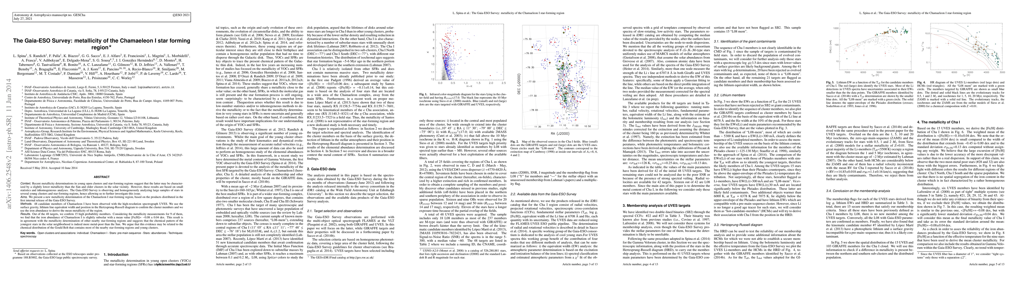 The Gaia-ESO Survey determined the metallicity of the Chamaeleon I star-forming region, confirming 15 high-probability members and finding a slightly subsolar iron abundance mean value of [Fe/H]=-0.08±0.04 dex, supporting the notion that nearby young star-forming regions have lower metallicity than the Sun.