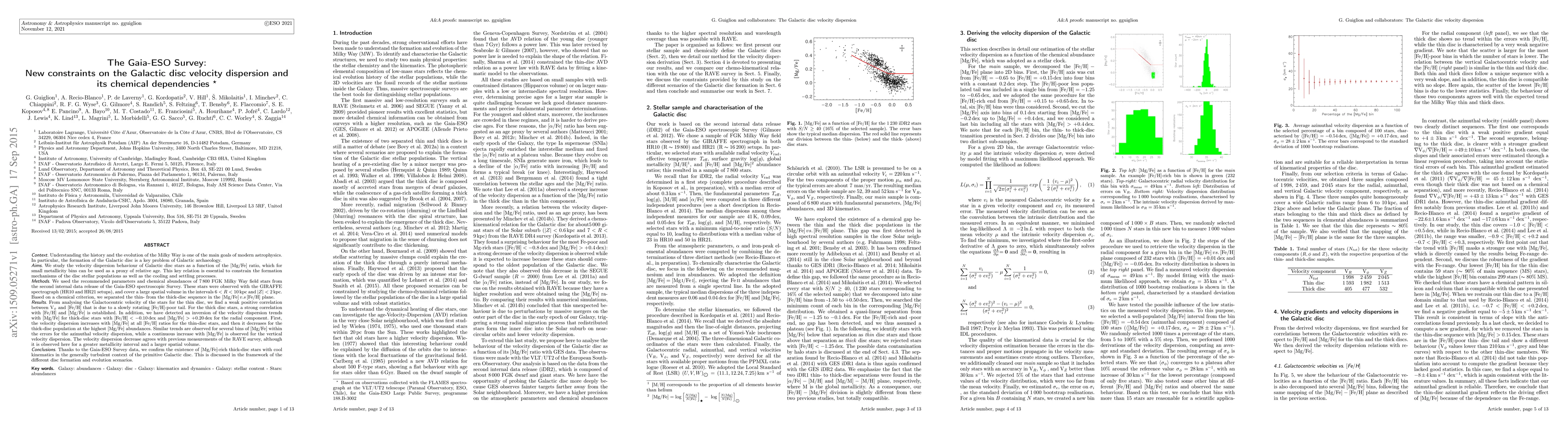The research presented a detailed analysis of the relationship between velocity dispersion and chemical abundances in the Galactic disc, utilizing high-resolution spectroscopic data from the Gaia-ESO Survey.